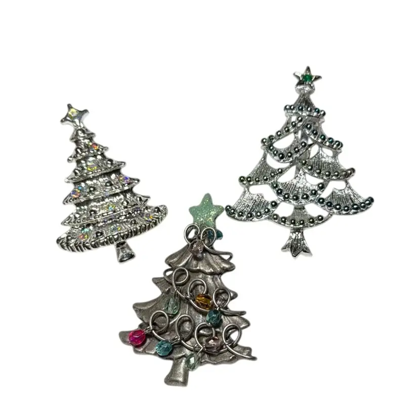A Trio Of Trees - Vintage Silvertone & AB Rhinestones Signed Christmas Tree Brooches - Gerry’s, AAI & Pewter - 2.25”