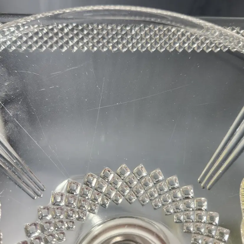 Condition: There are a few scratches on the top of the stand from an over zealous cake cutter :D (see last photo), they are difficult to photograph. There are a few small fleabites along the rounded edge of the foot. On the underside of the foot there is a chip but imo it is not noticeable when in use.
