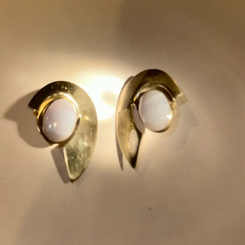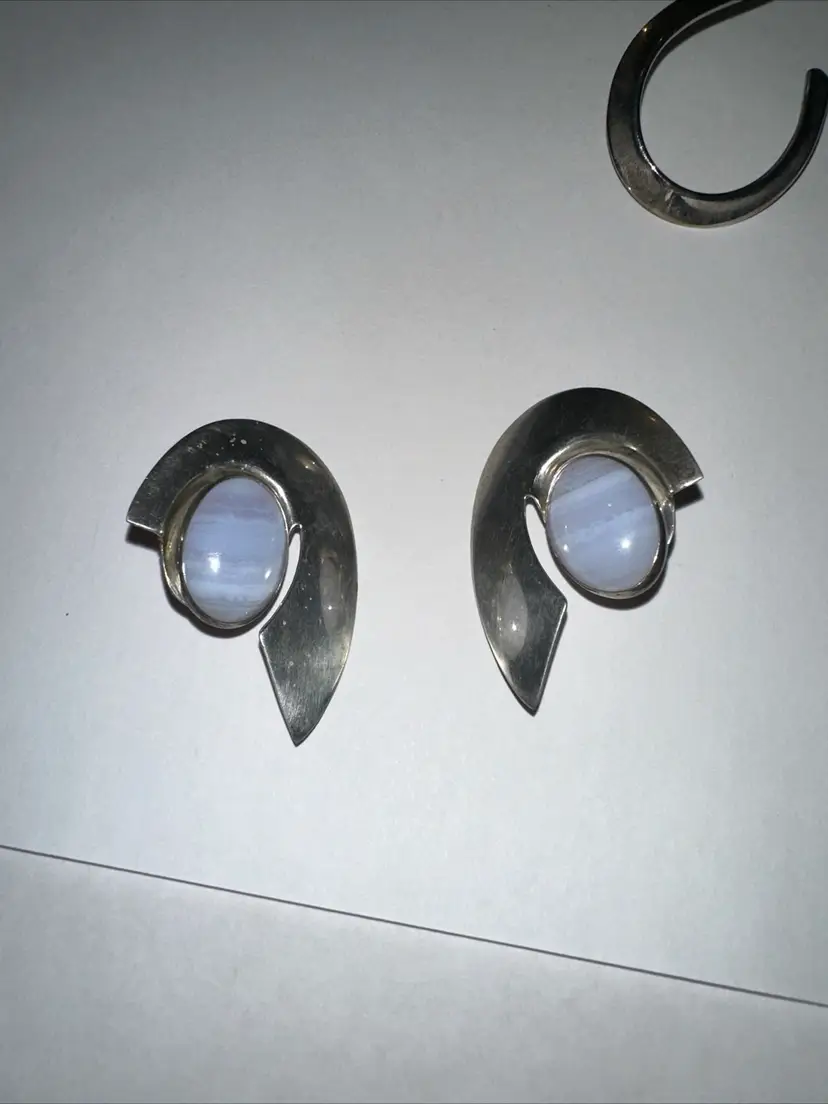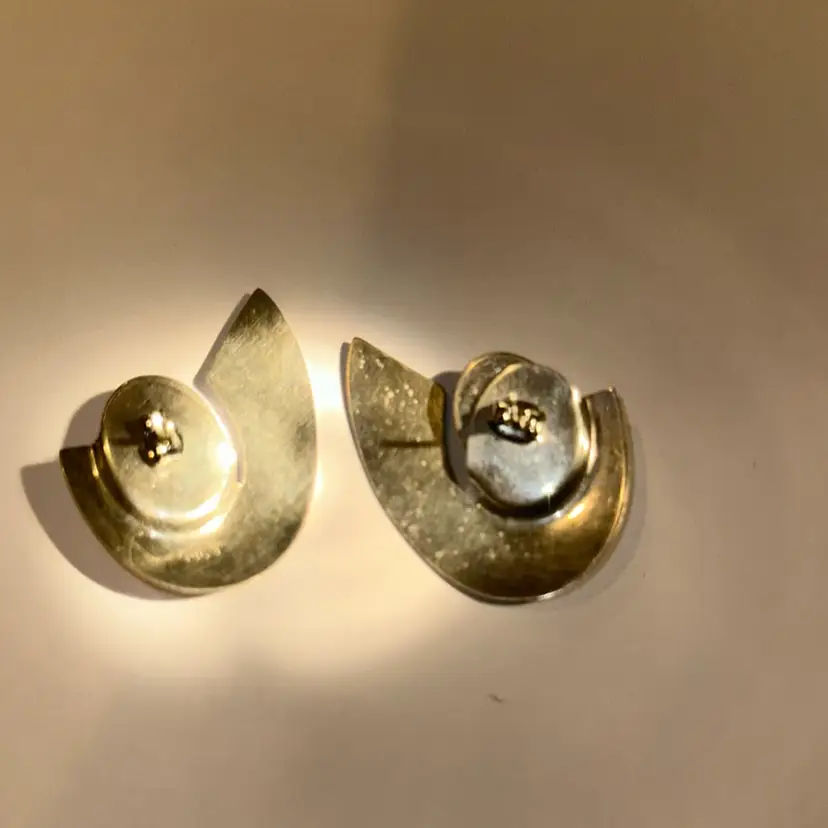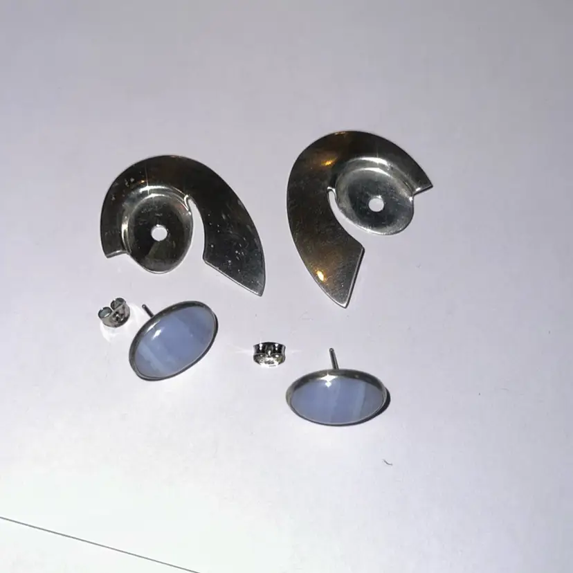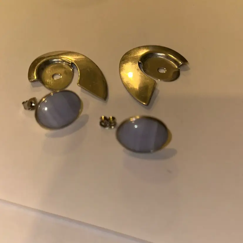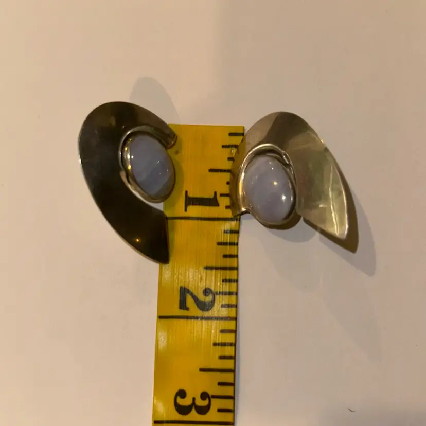 Can be worn separately with stones or glass one of the backs of the earring has been bent a little and measures 1 1/2” long. The earing are beautiful some mark as shown in the last picture