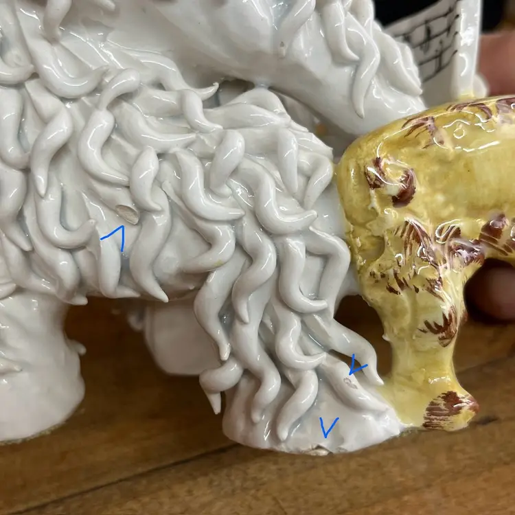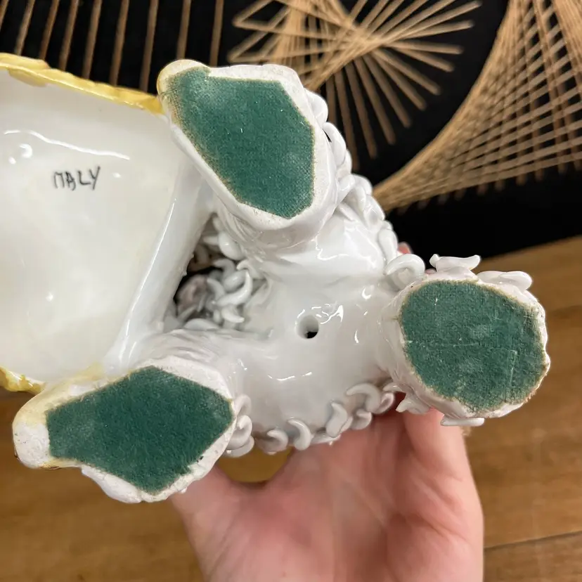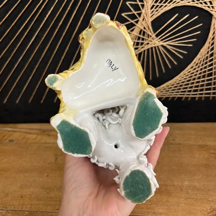 Approximately 8” x 7” x 4”. Please look closely at photos to see condition issues. Due to the age and nature of Italian ceramics there are various places of chipping. Due to the detail of this piece I may have missed some small chips, but I did my best to point out all the places that I could find with blue arrows. I also turned off combined shipping for this item due to the large and delicate nature. If you do have other orders that can safely be shipped with it, I will do so and refund any overages over a dollar as usual.