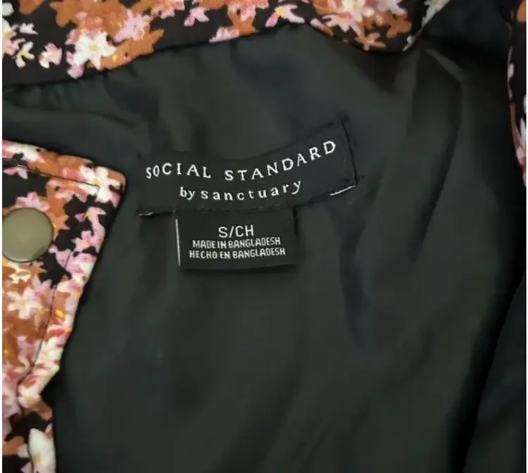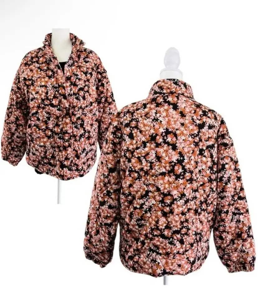 This is new with tags. Will fit size large - 22 inches pit to pit. Oversized. All Social Standard by Sanctuary. * All over diamond quilted pattern * Made from tencel, a sustainable plant-based fabric * Snap Front closure * 2 patch pockets * The Tencel fibers are manufactured using an environmentally responsible production process * Elastic sleeve opening * Tencel fibers are durable and have a long-lasting quality * Funnel neck * Relaxed fit