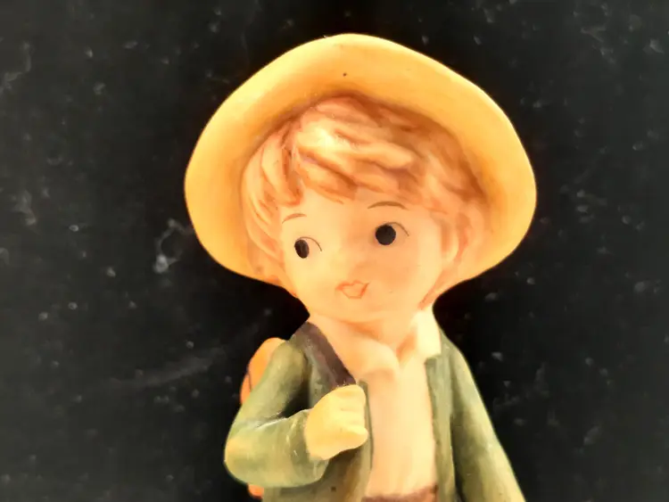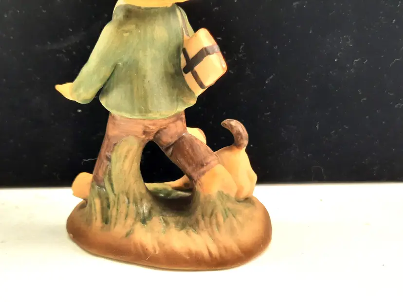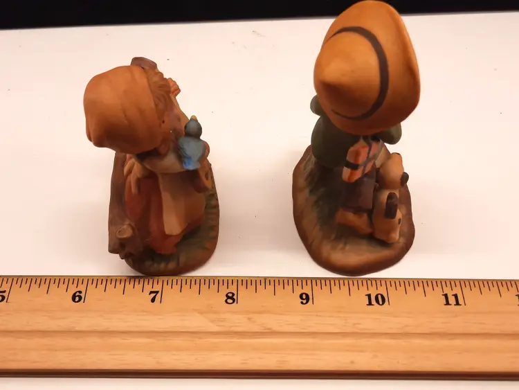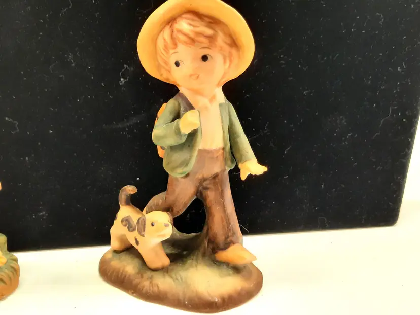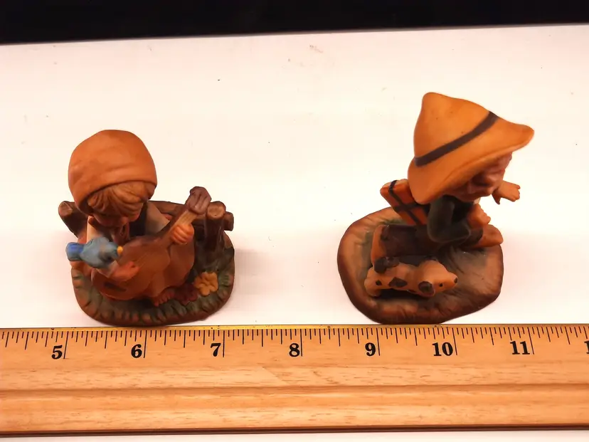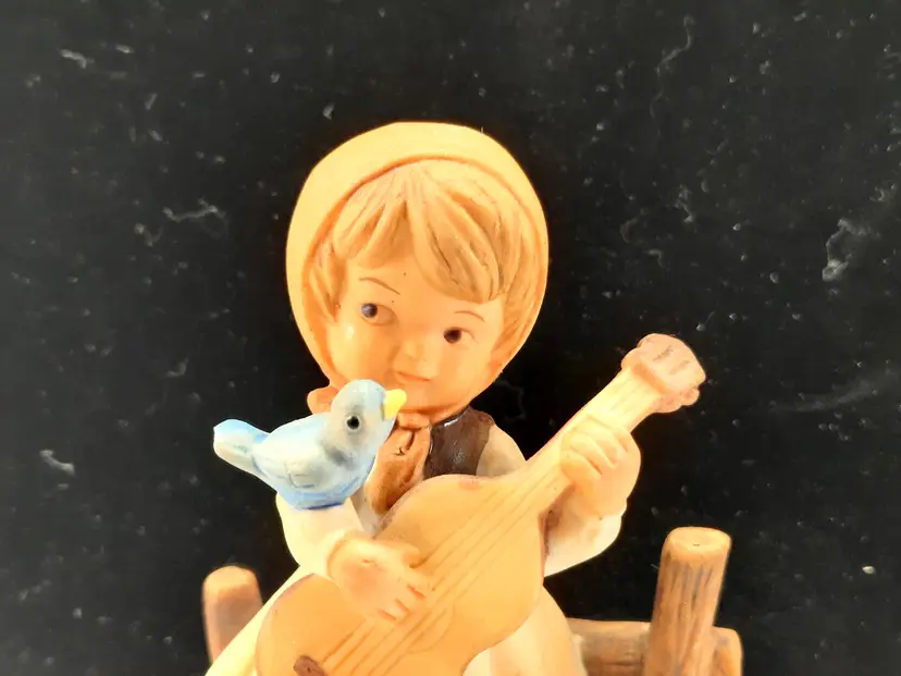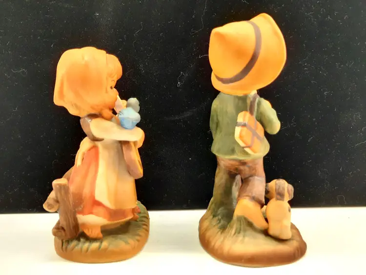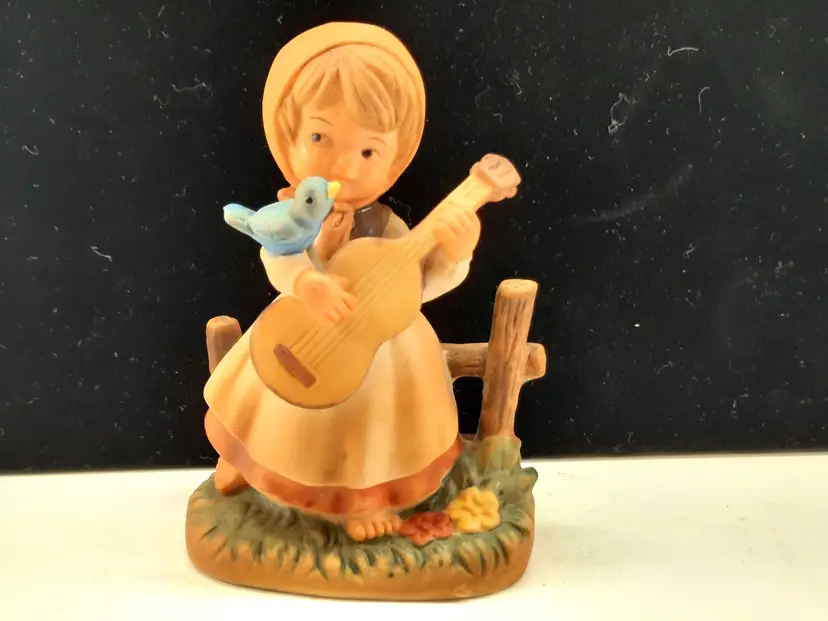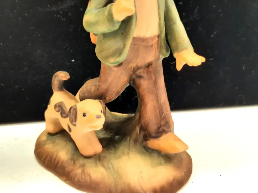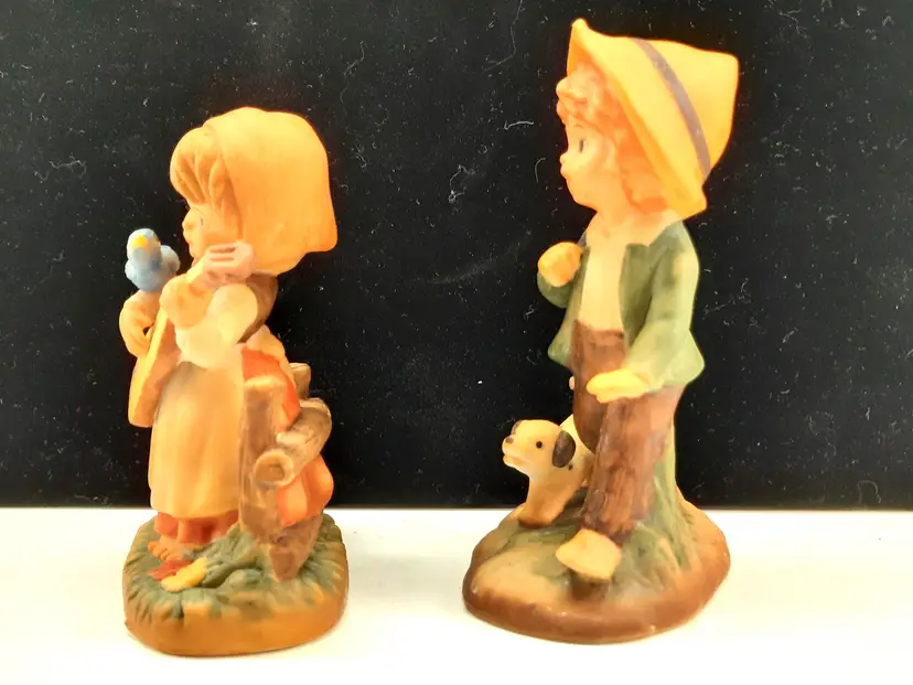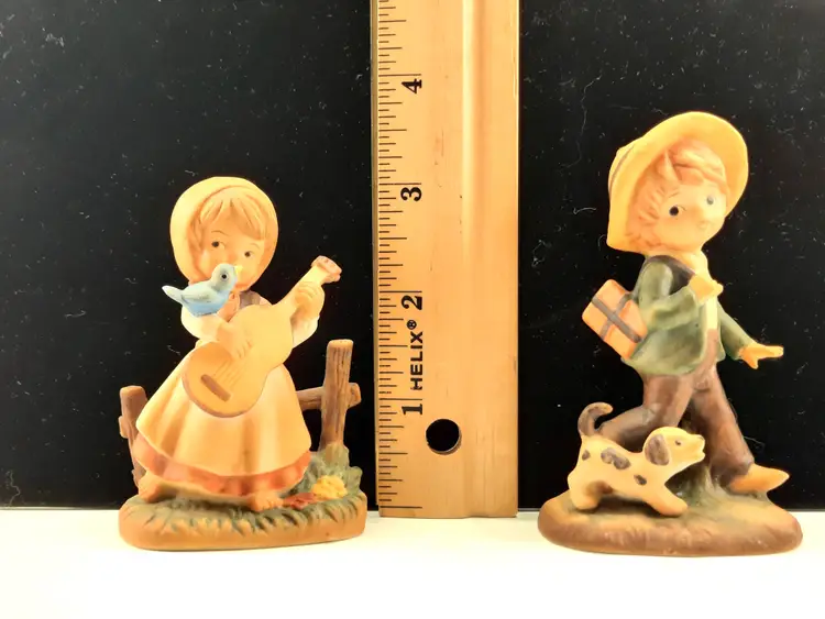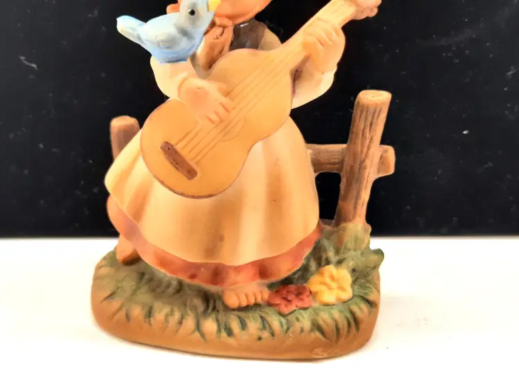This is an adorable set of Napcoware Figurines of a Boy and a Girl, heading to or from school while playing guitar, singing with a blue bird and puppy dog. Minimal wear...see pics for more info. Thanks!