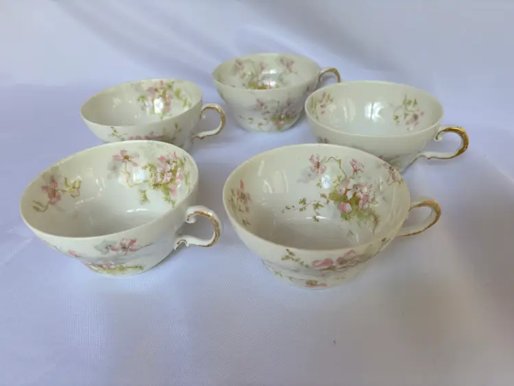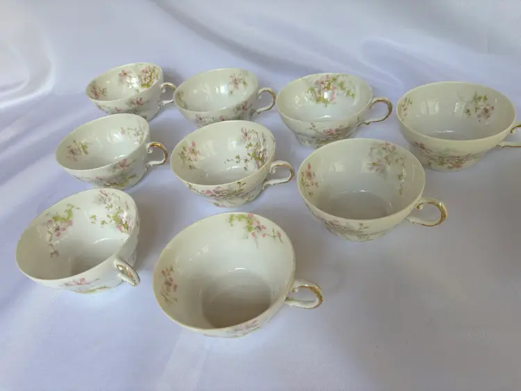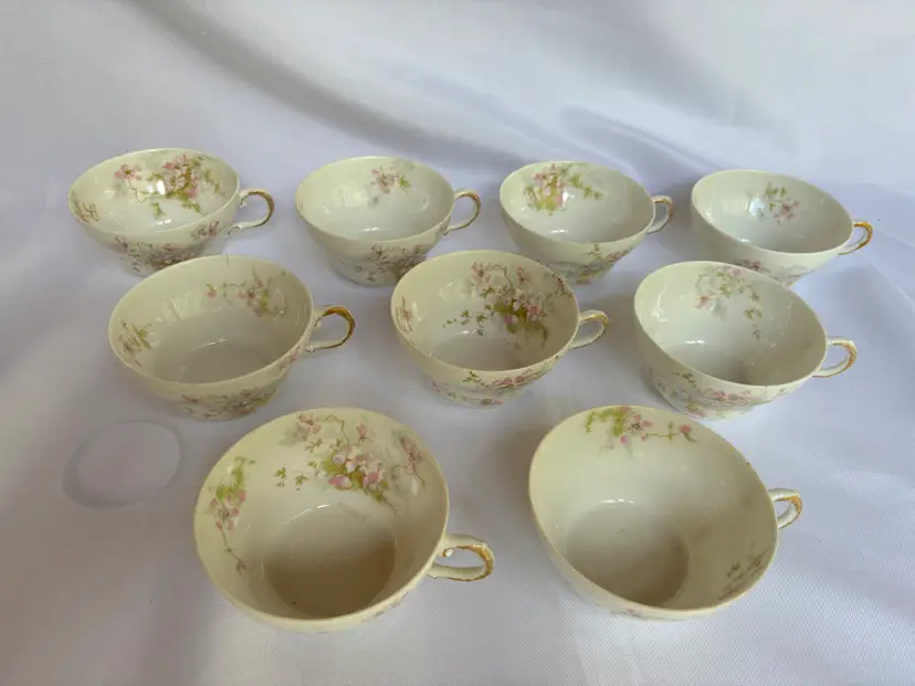 Set of 9 Antique Theodore Haviland Limoges France “Patent Applied For” Tea Cups