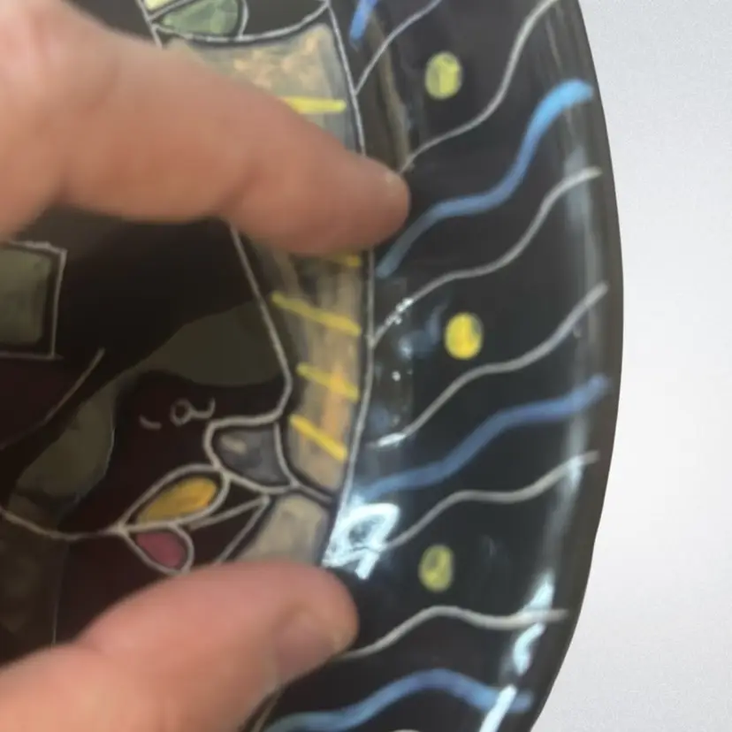 paint Lost on the side and a little roughness around by the fingers not cracked as shown but it hard to but I feel it 9x9