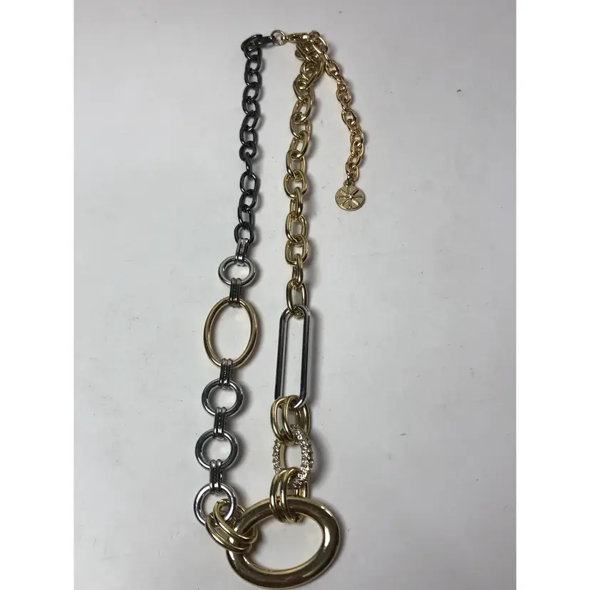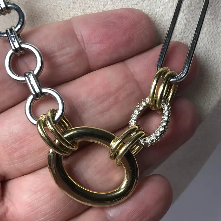 Signed RJG Graziano 18-20" Multicolor Chain Link Necklace Adjustable Crystals. Goldtone Silvertone and gunmetal. Great condition. Little to no wear.