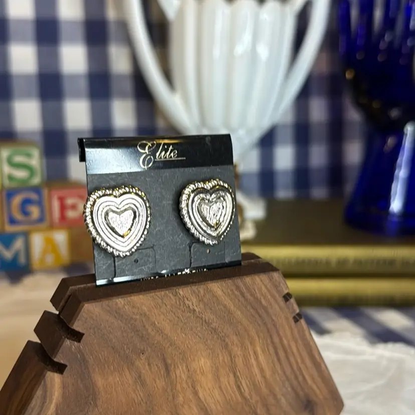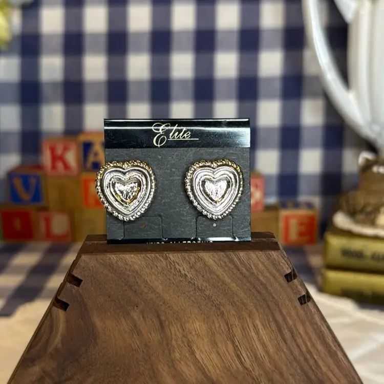 Silver-Tone Heart Pierced Earrings. In excellent vintage condition.