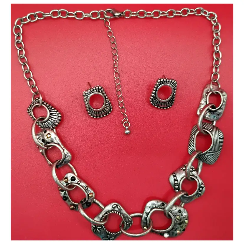 #01 Silver Tone Set, 16in Necklace and Matching pierced earrings, preowned, good condition, no brand
