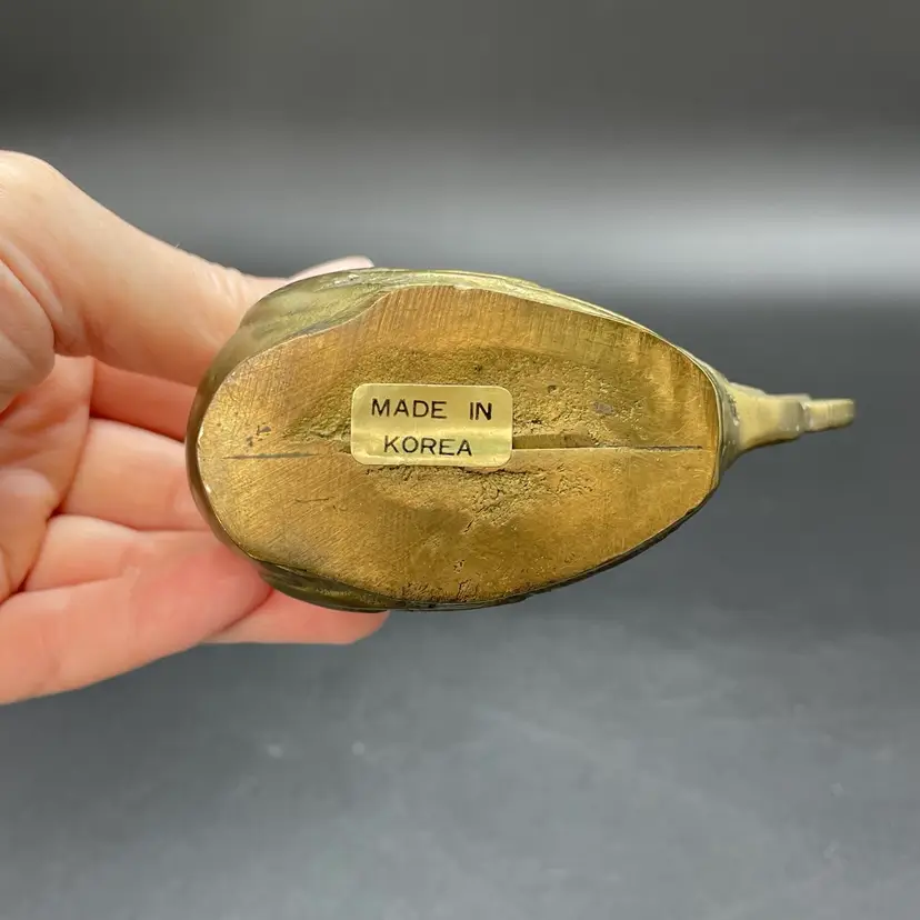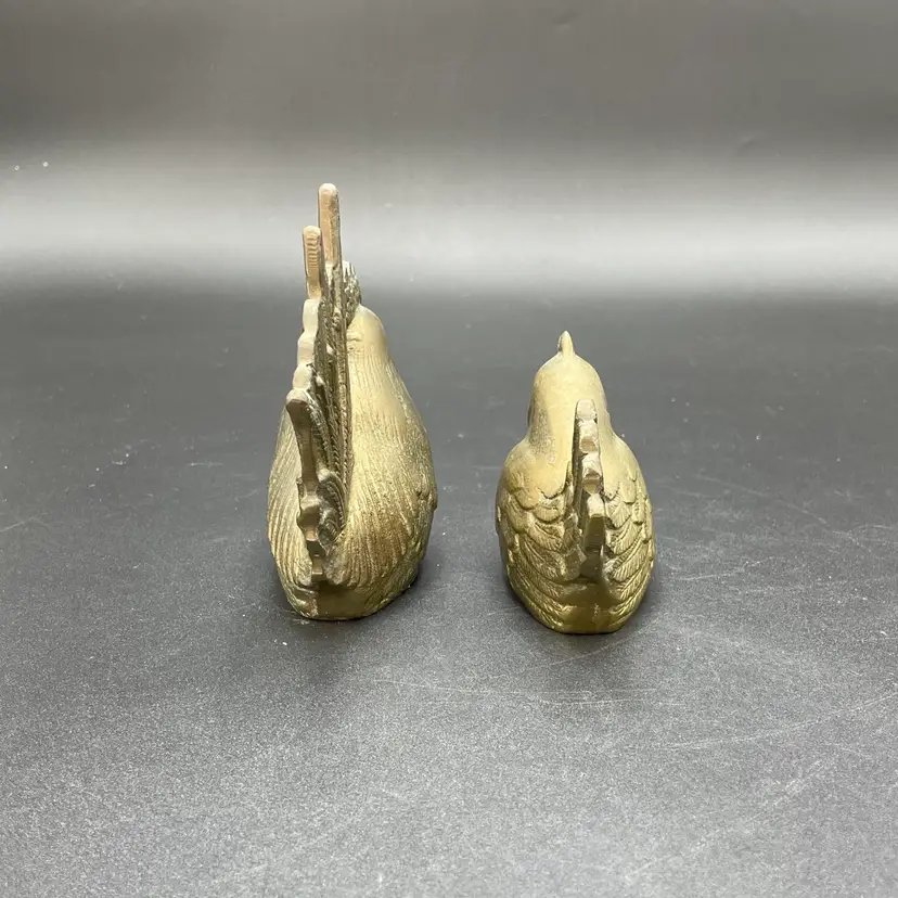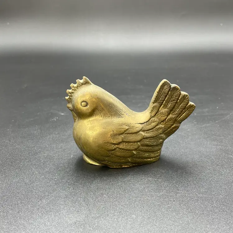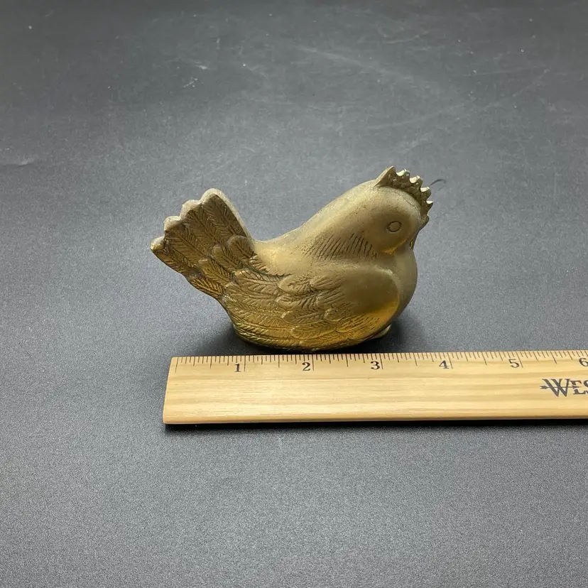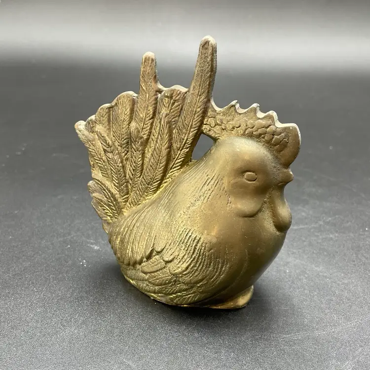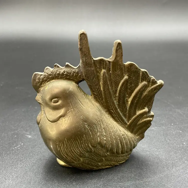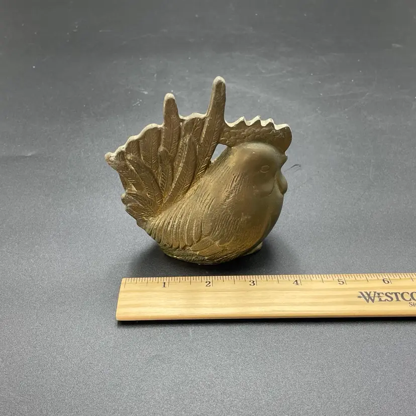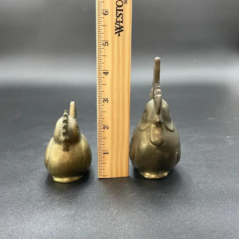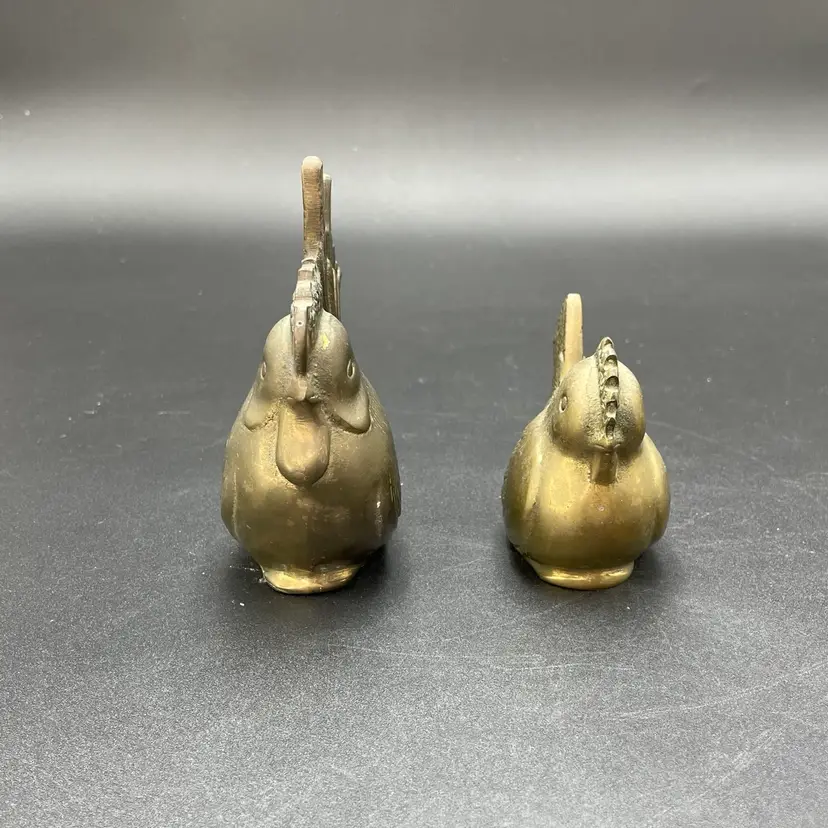 This is a set of 2 rare mid century modern solid brass rooster and hen figurines. Made in Korea. The rooster measures approximately 4.5" tall x 4" long. The hen measures approximately 4" long. No major flaws.