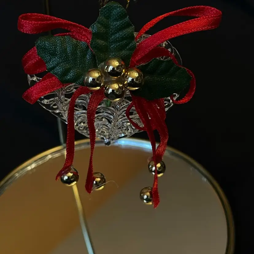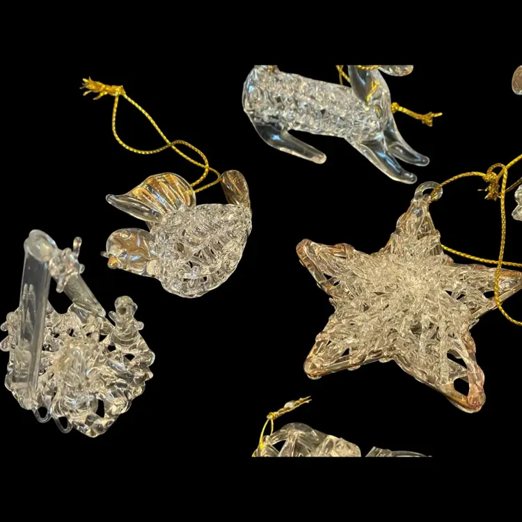 Used (vintage?) condition. One heart has loop for hanging missing but it can still be hung . 5 hearts, 1 star, 1 bell, 1 bird, 1 horn,1deer, 1 angel, 1 nativity, 1 boot