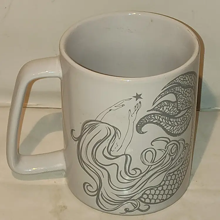 Starbucks Mermaid Mug 2020 11oz White w/ Gray Print *J