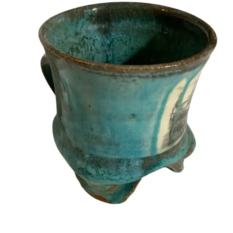 In great condition. No chips or cracks. Features some crazing. Made of red clay. 4” tall by 3.5” diameter