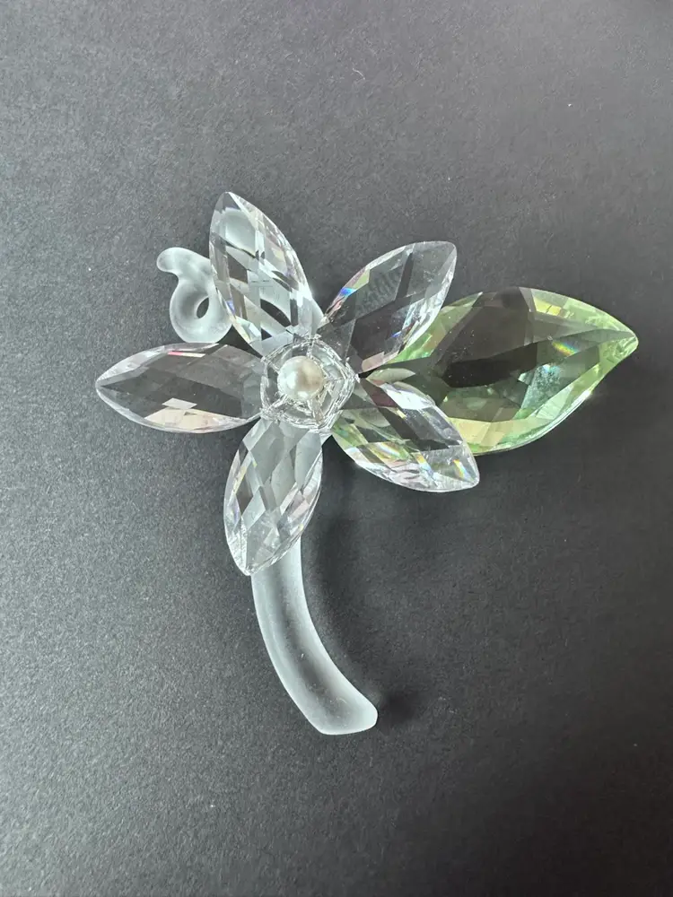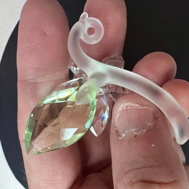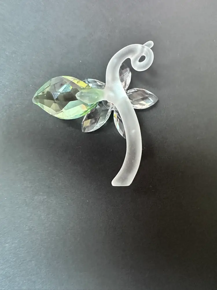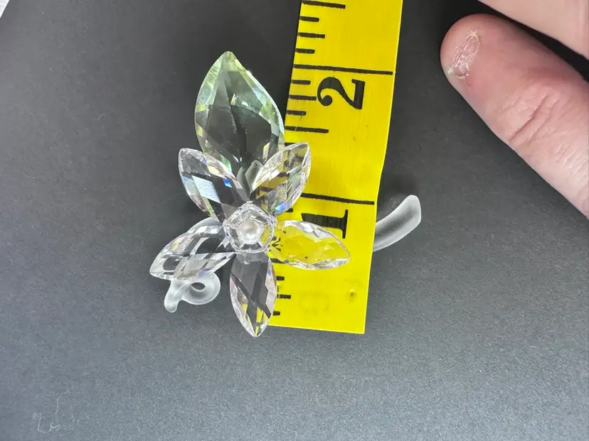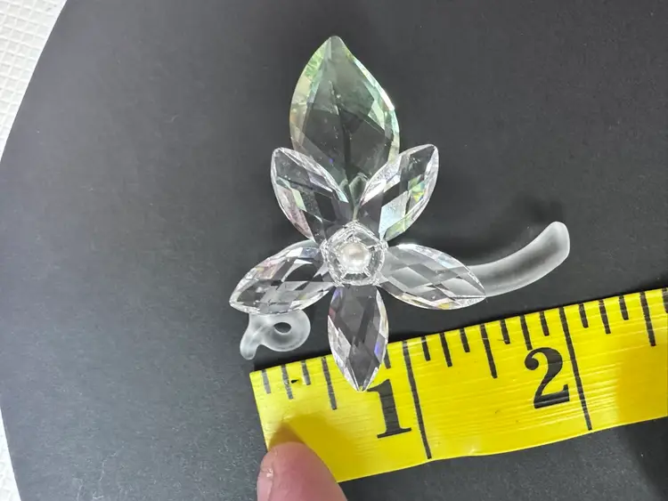 Measurements over 2” long and across under the flower over 2” pass the leave no chipping or cracking I can't find the swan but I really do think this is a Swarovski cristly glass