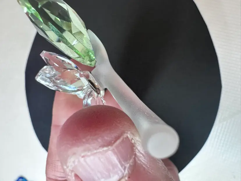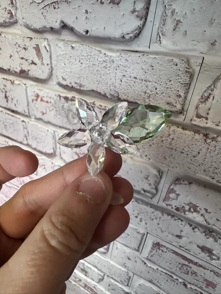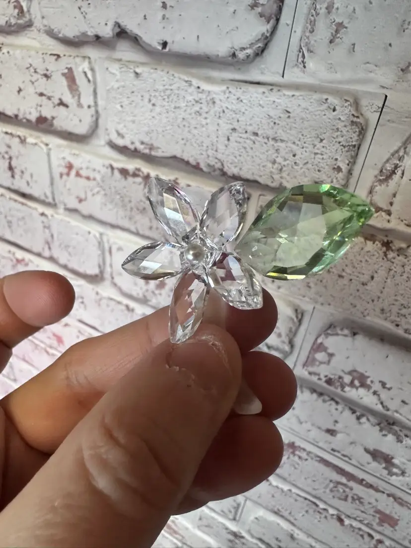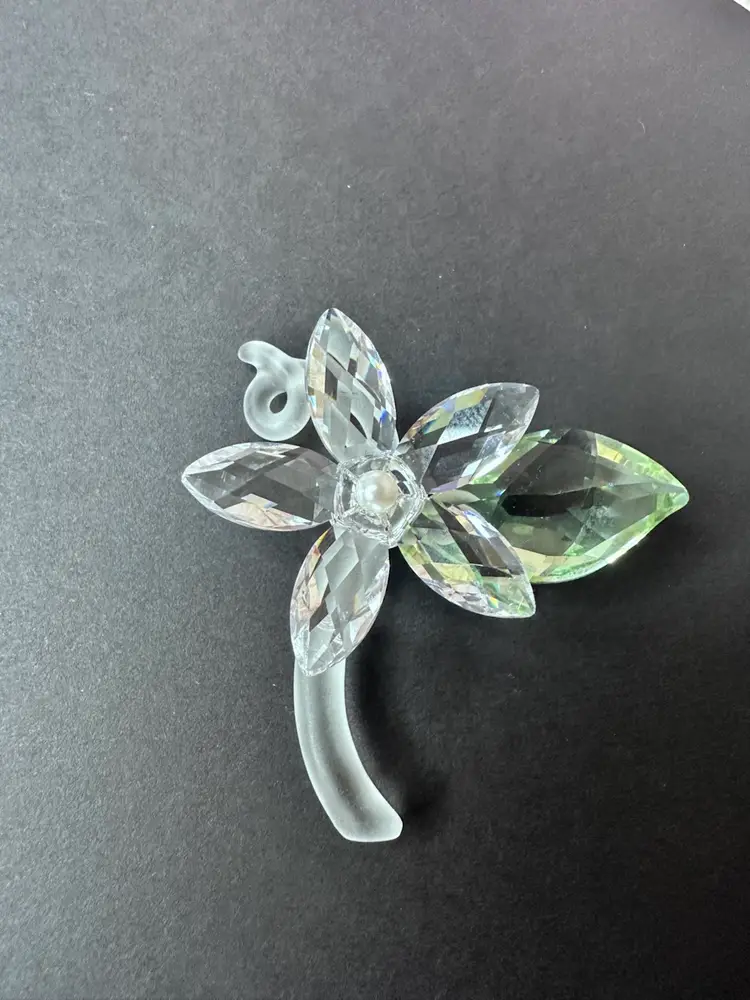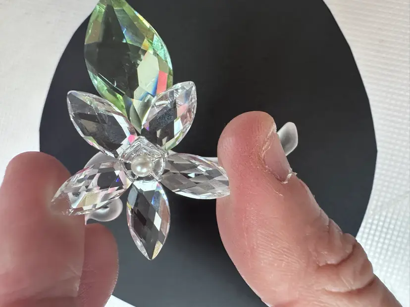 Measurements over 2” long and across under the flower over 2” pass the leave no chipping or cracking I can't find the swan but I really do think this is a Swarovski cristly glass