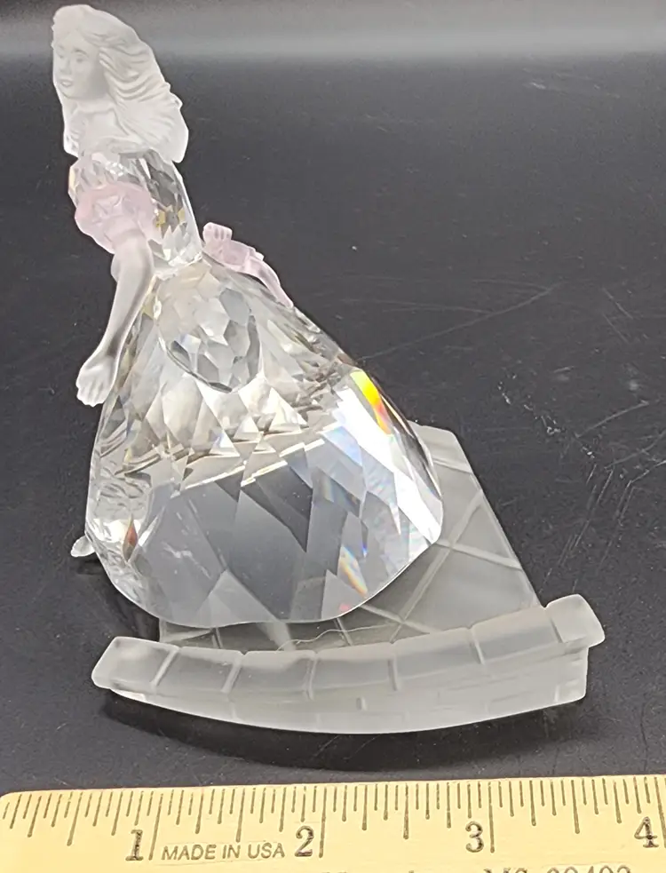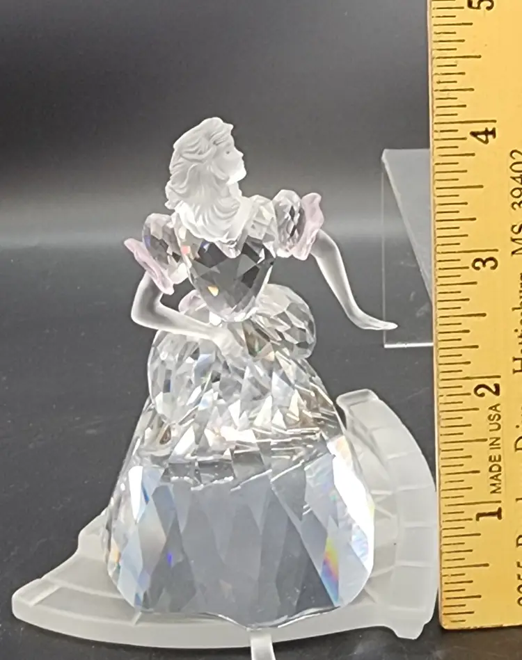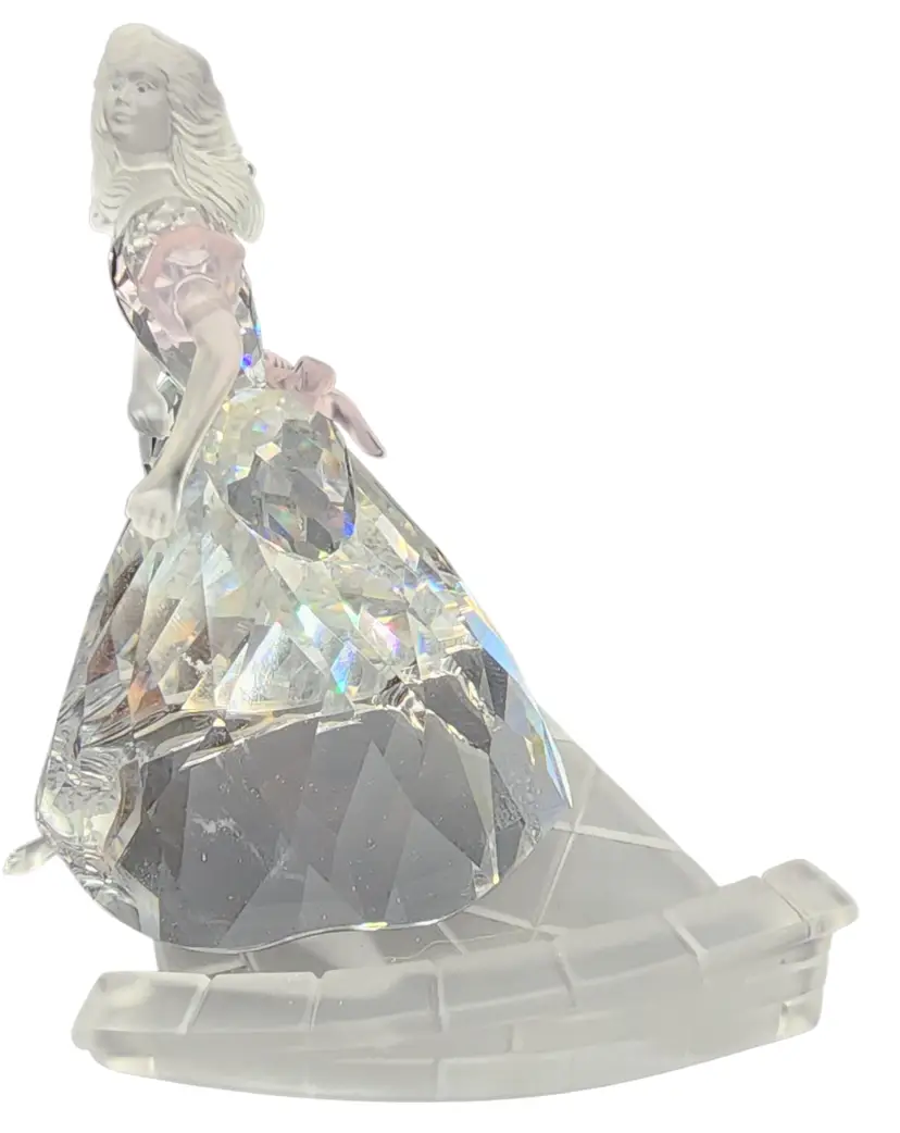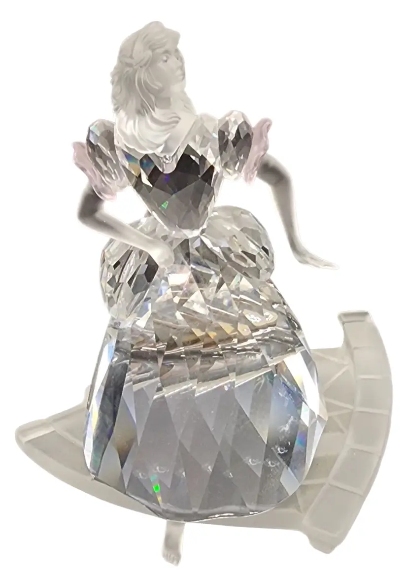 The Swarovski Silver Crystal Collection Cinderella 255108 2005 Retired Slipper Steps is a small figurine featuring clear crystals and gold accents. It is from the Crystal Memories collection and was manufactured in Austria in the year 2005. The elegant design of the slipper steps captures the essence of the Cinderella story, making it a perfect decorative piece for all occasions. This original Swarovski figurine is a timeless collectible that exudes luxury and charm with its shiny finish and intricate crystal details.