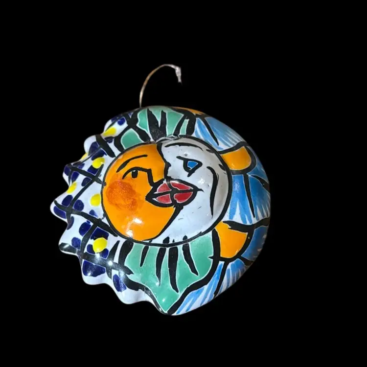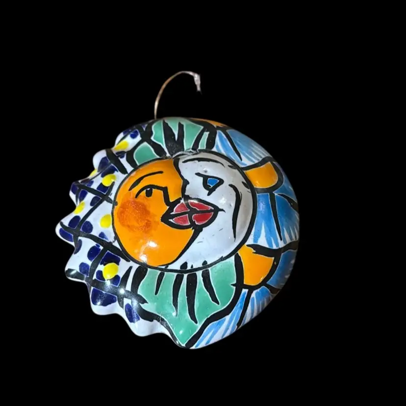 #Talavera Sun & Moon Lovers Handpainted Pottery Ornament - 3.5” Diameter