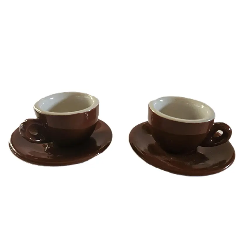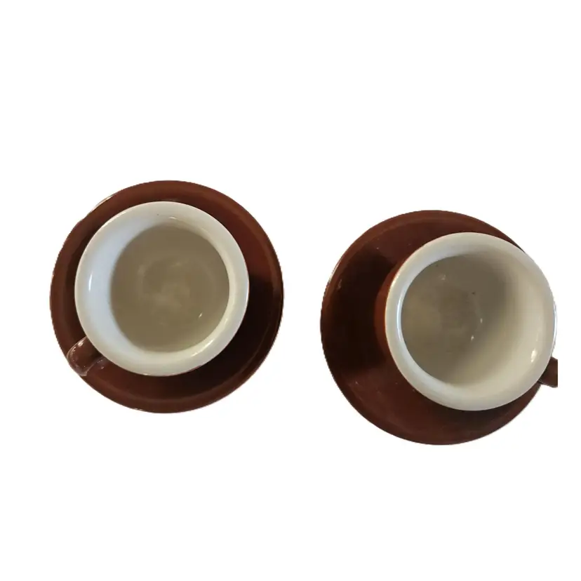 #01 - Two Nuevo Point Italian Espresso Cups and Saucers, Maroon Exterior with White Interior
