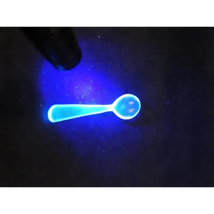 Vintage Anchor Hocking USA 1950's M331 Salt & Pepper Shakers and Mustard Pot with original Lucite Spoon. Cart itself is labeled Taiwan. The containers are Anchor Hocking and are in the Pressed Star Pattern of pressed glass. The Lucite spoon glows and there is some glow in the glass as well.