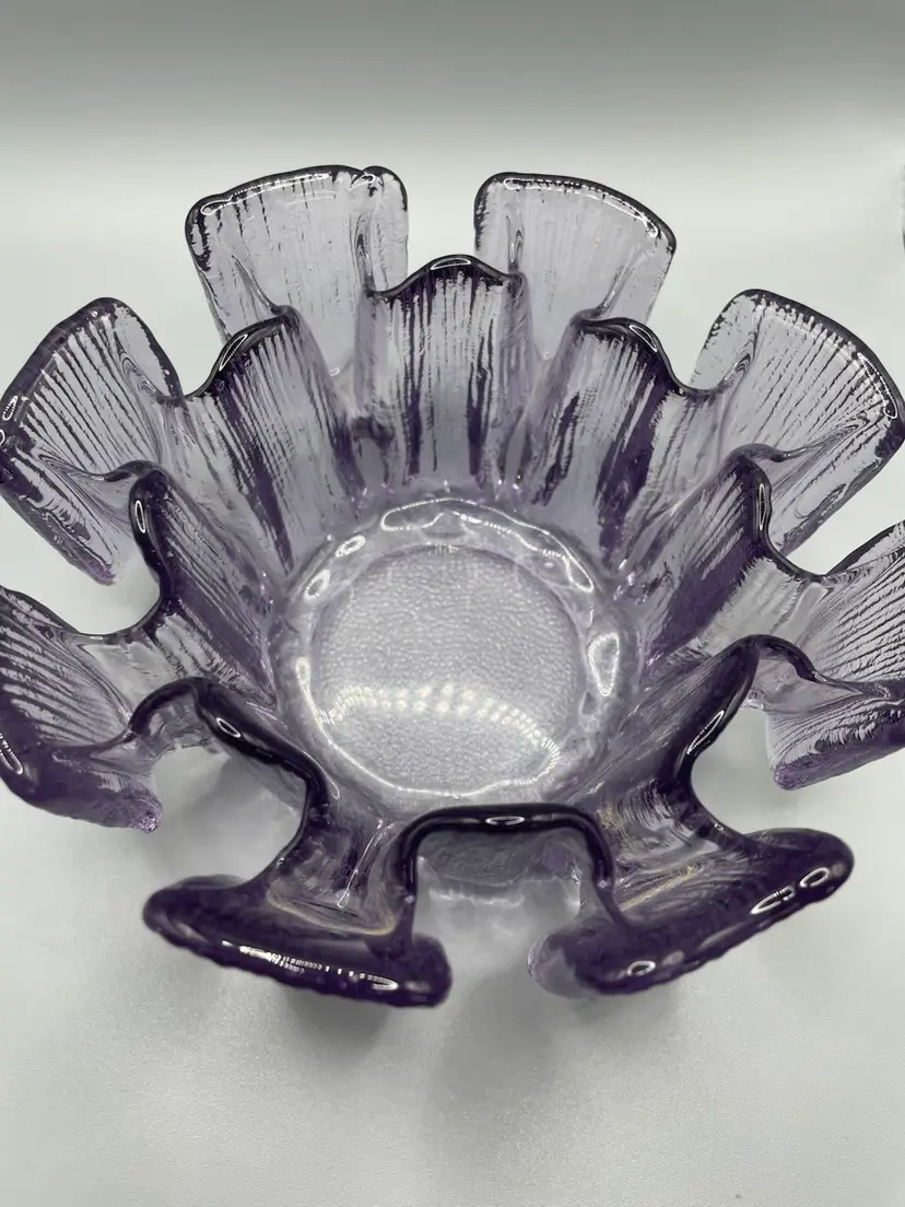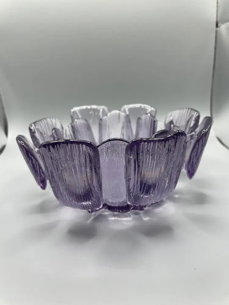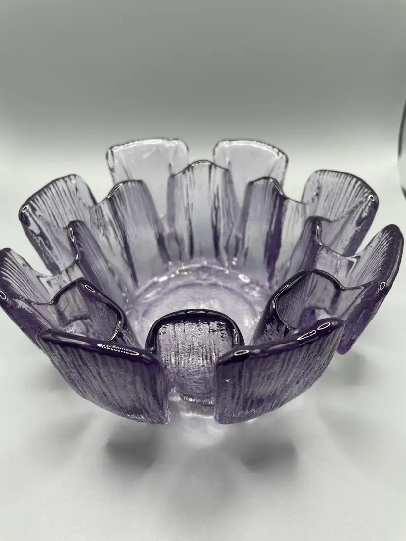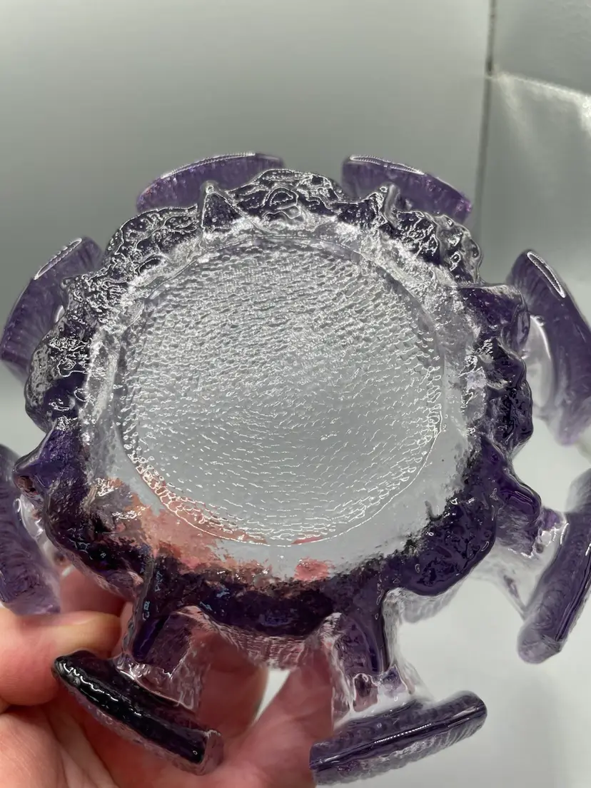 This is such a cool piece! The purple is so pretty. The color is called teaberry. It measures 6” by 4” and features a textured pattern on the outside.