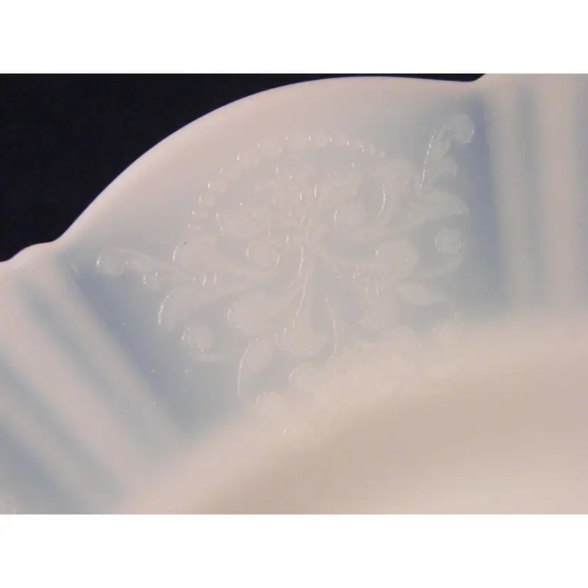 Just as the title says, this is a MacBeth Evans American Sweetheart Monax white Depression glass Luncheon plate. It is approx. 9". It was made between 1930-1939 and was Made in the USA. It is beautifully opalescent. Lovely dish.