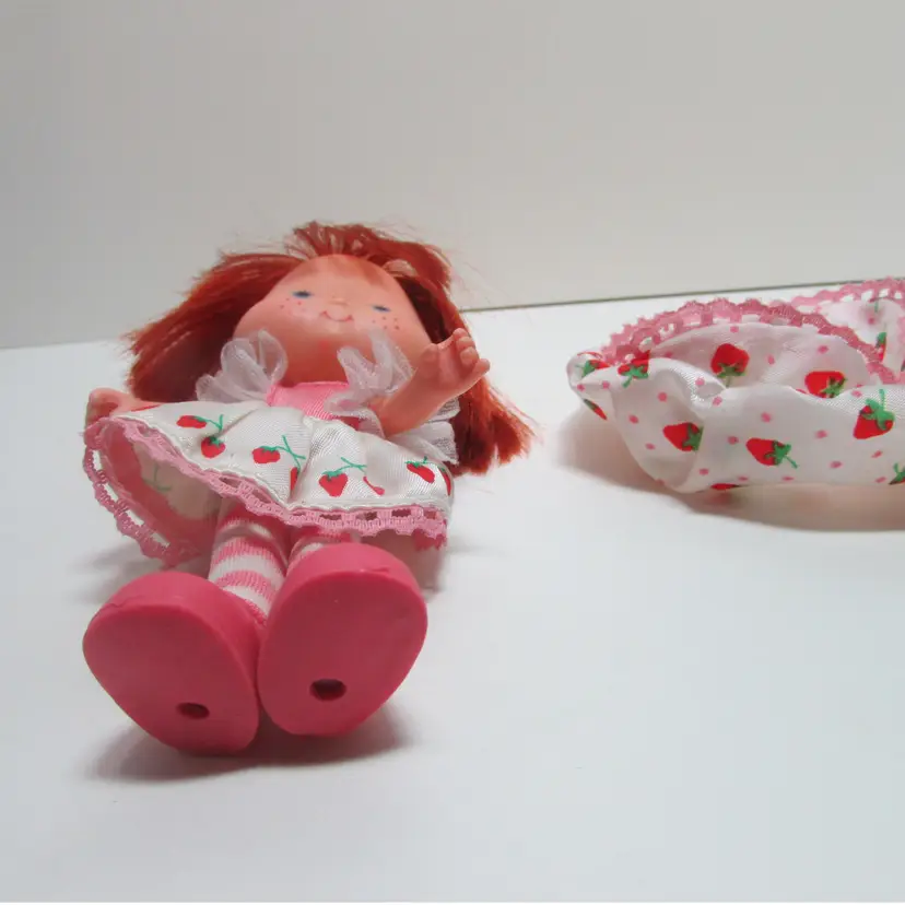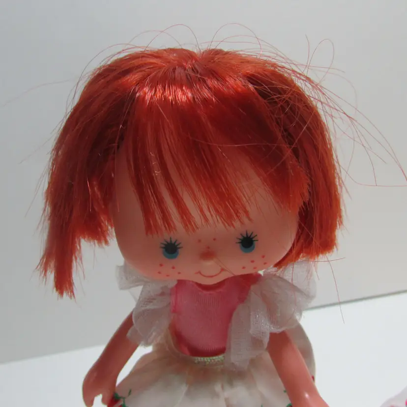 This adorable doll has some wear and she no longer has her fruity scent. She is about 5 1/2" tall. This is shipped from a smoke free home. Thanks for looking! locfb6