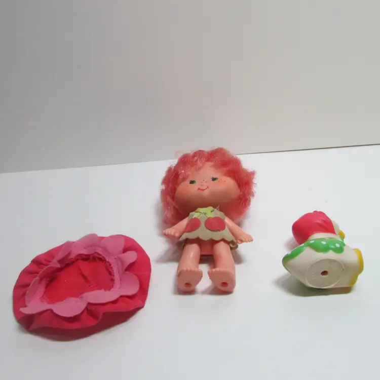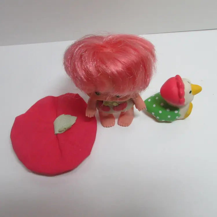 This adorable doll has some wear, she is missing her stockings, shoes and she no longer has her fruity scent. She is about 4" tall. This is shipped from a smoke free home. Thanks for looking! locfb6