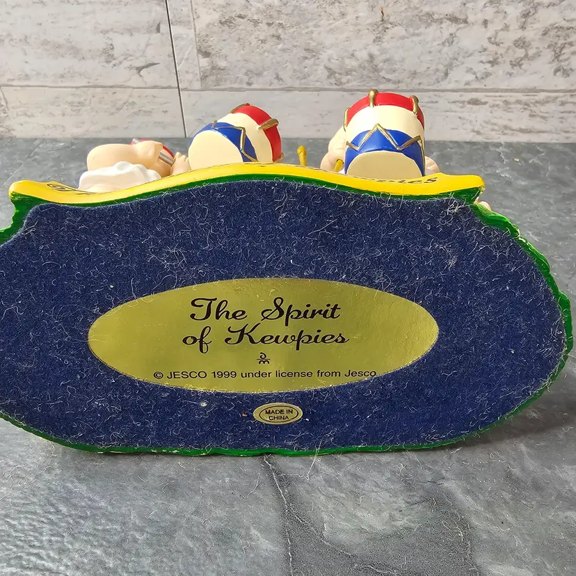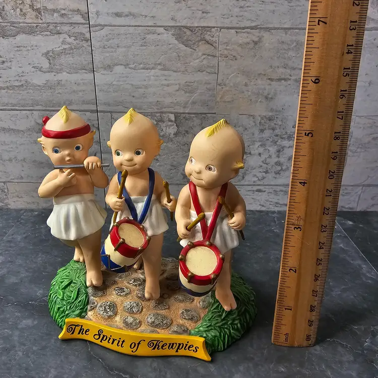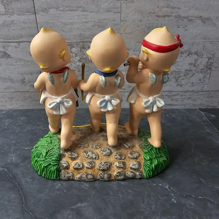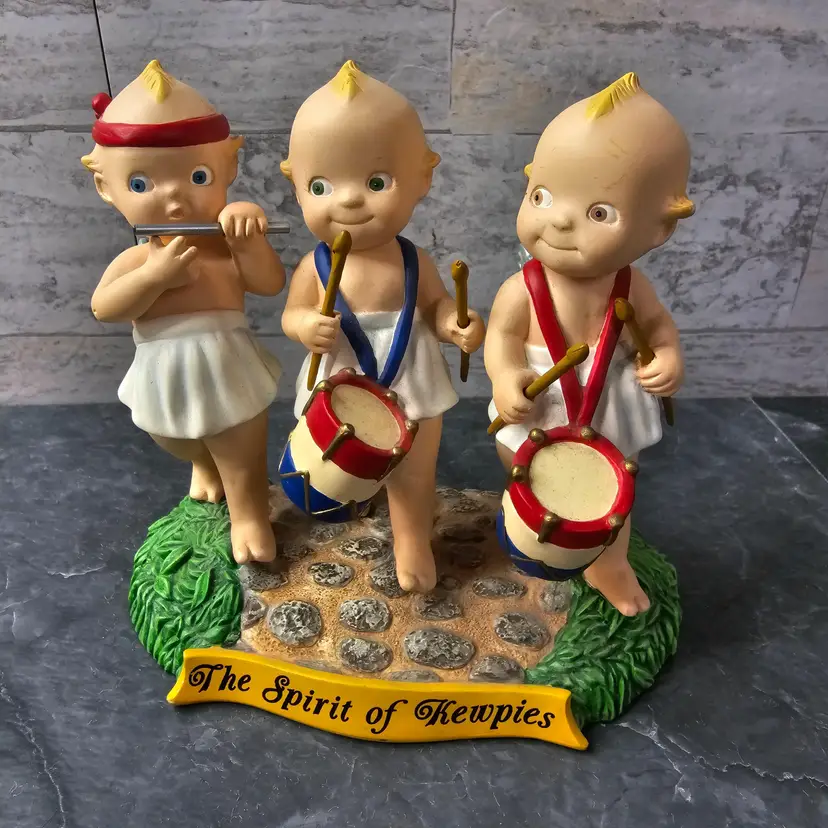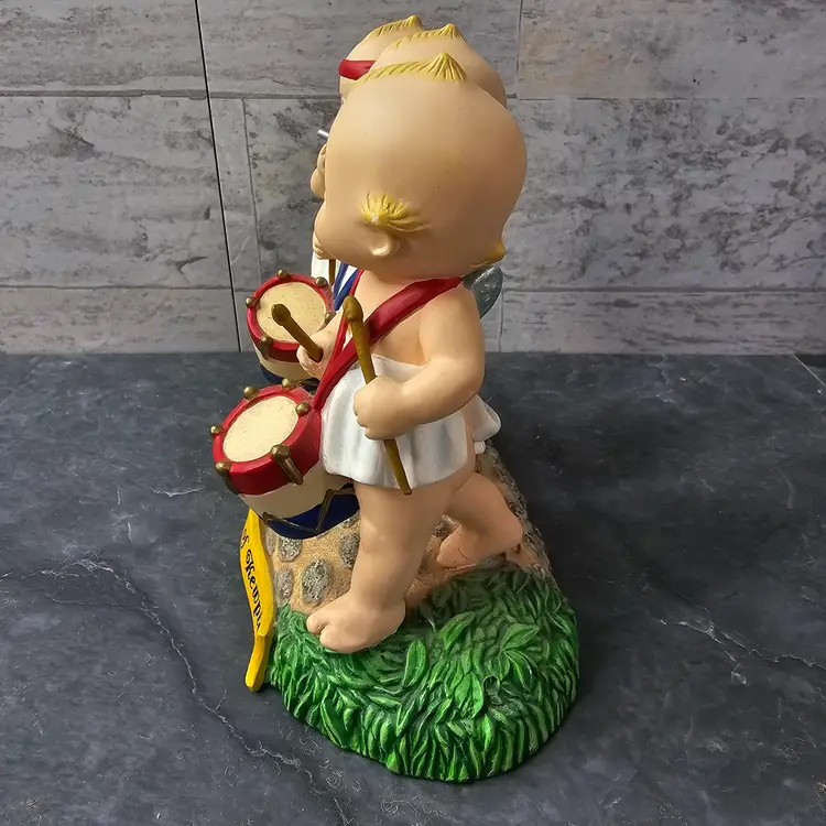Adorable vintage figurine featuring a trio of Kewpies playing instruments. Perfect for collectors or adding a whimsical touch to your decor.