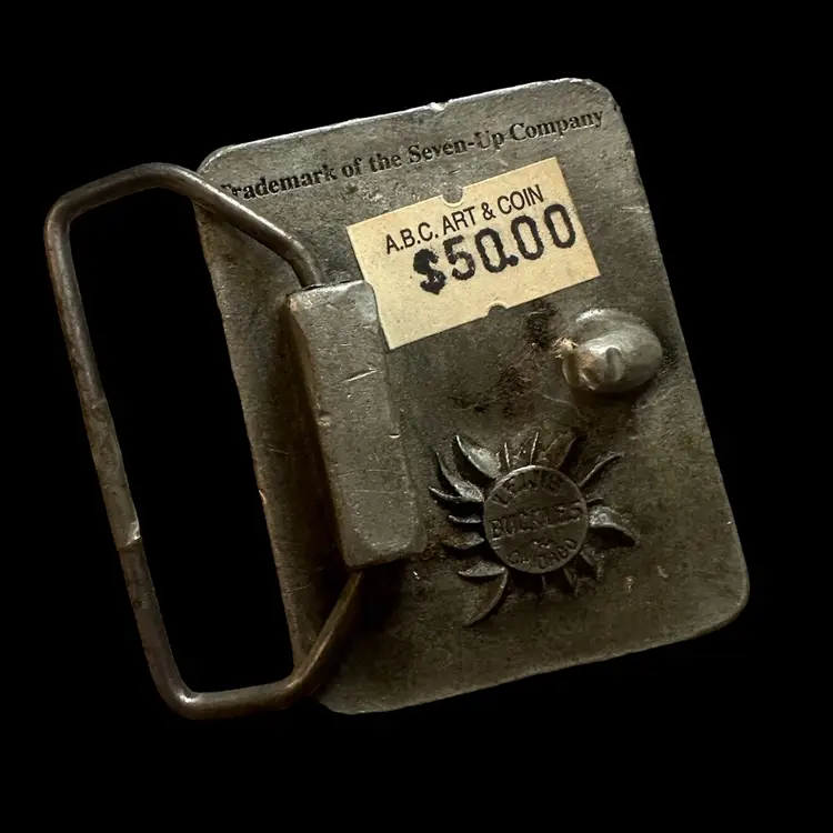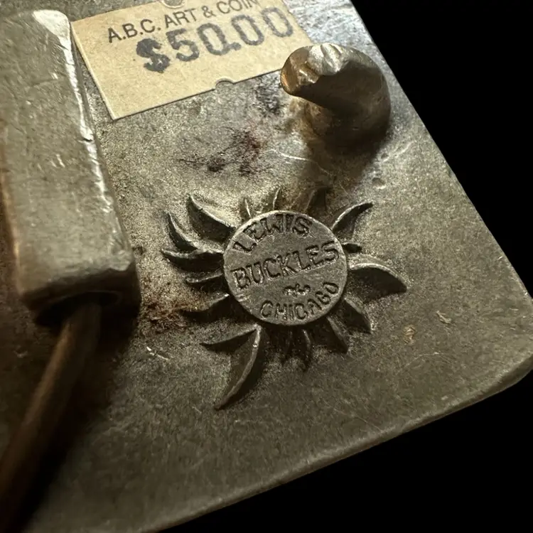 What an awesome belt buckle!! Excellent patina, original price tag still attached. HEFTY. Approx 2”x3” Aged and fabulous.