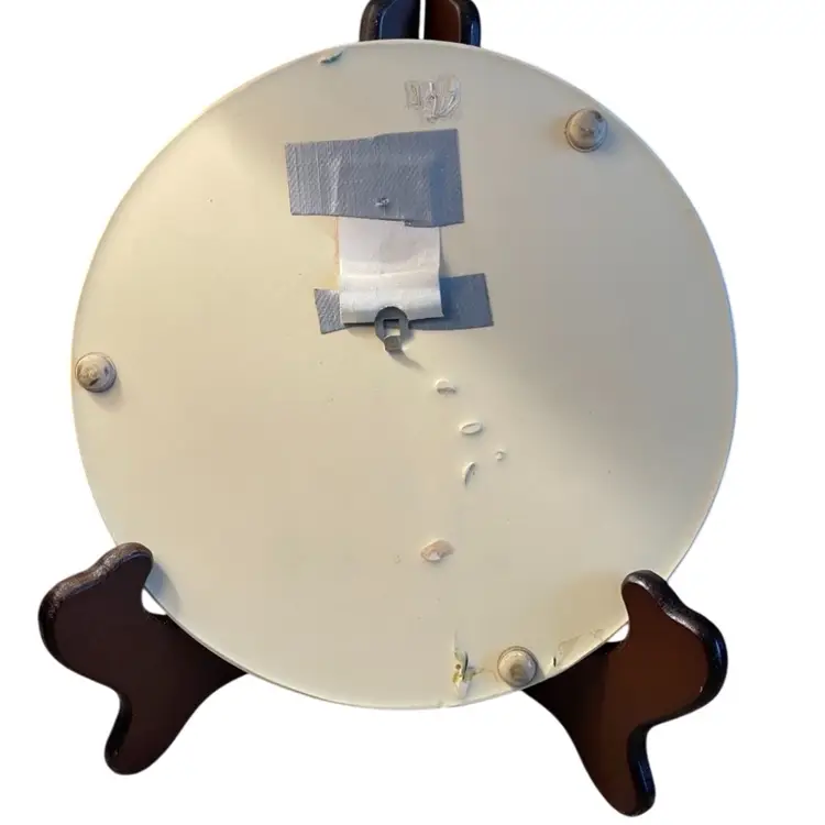 Good used condition . Light surface scratches. Has rubber feet and a hanger for the wall. 7-3/4" round . See photos for details .