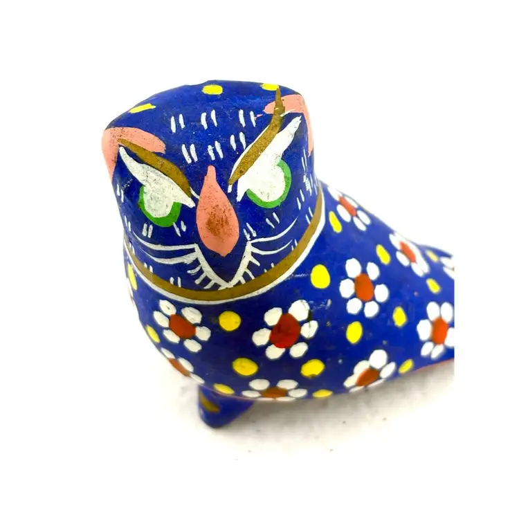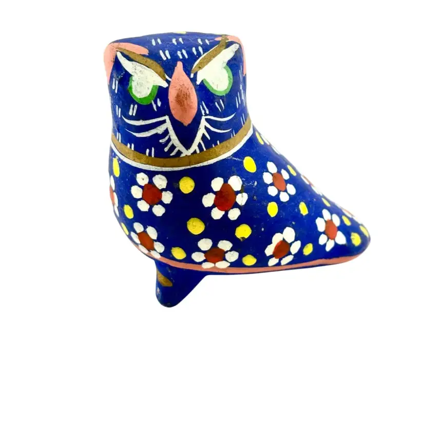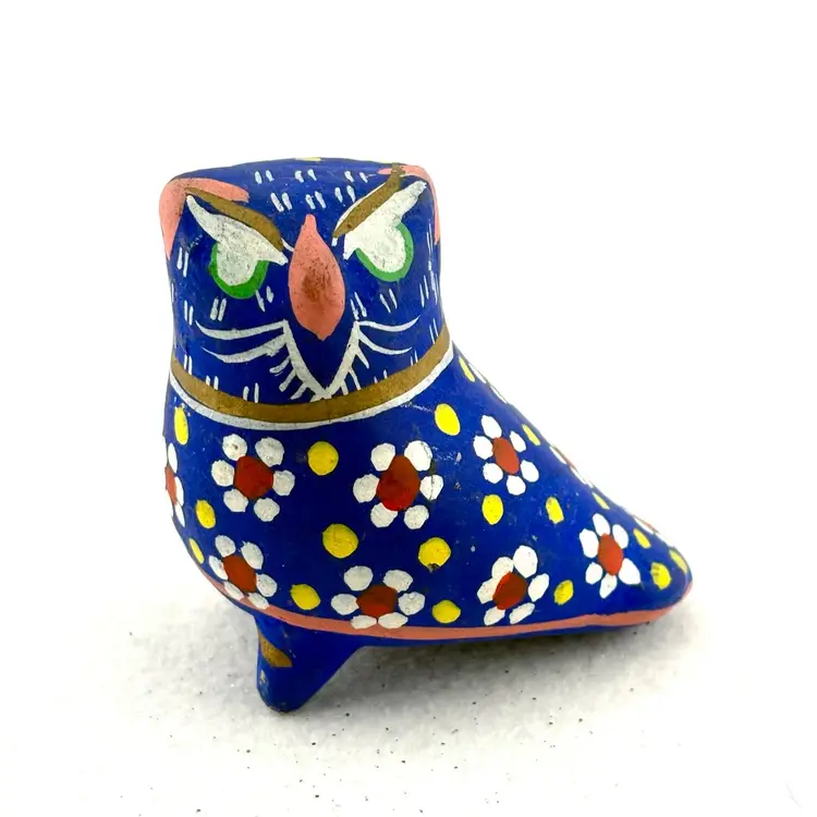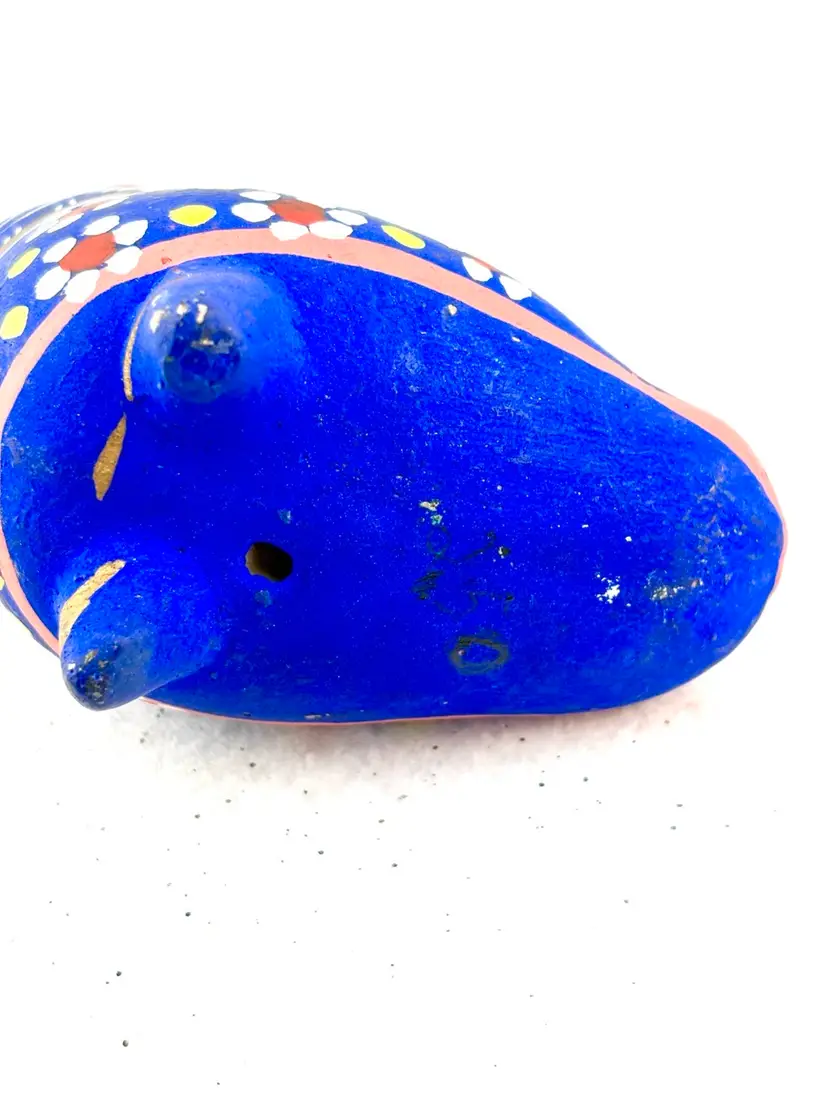 This type of Mexican pottery is typically made in the Oaxacan area of Mexico. The yellow glows. There are no chips or cracks but there is smudging on the face.