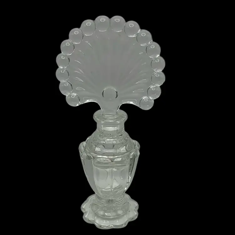 Vintage Art Deco Perfume Bottle With A Fan Shaped Stopper, 8-1/4” Tall x 4” Wide