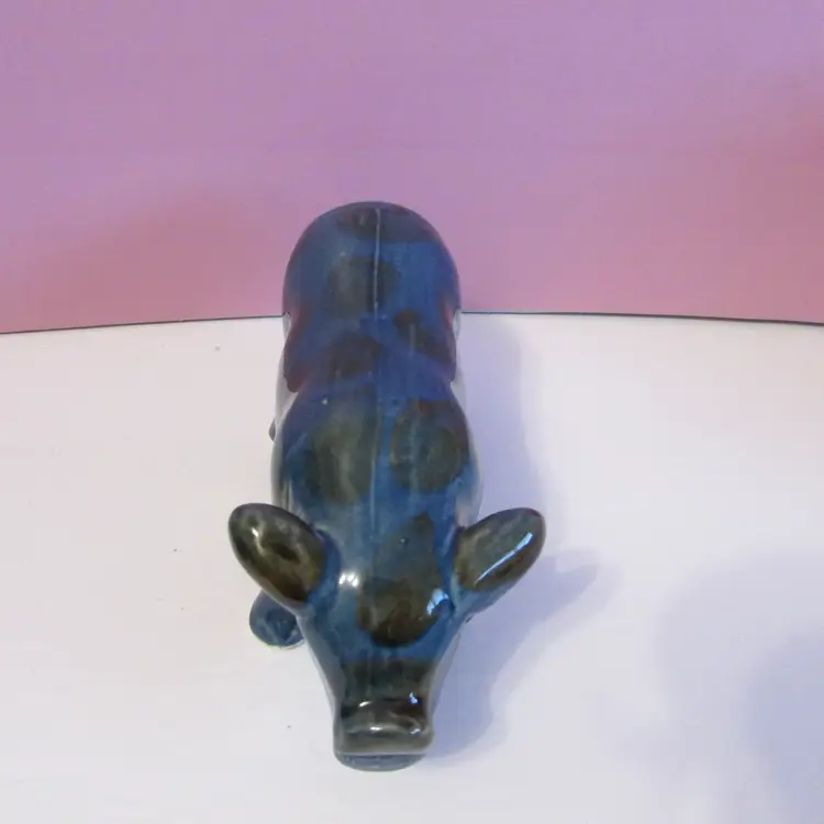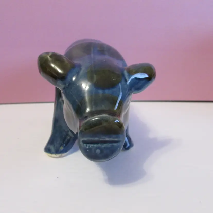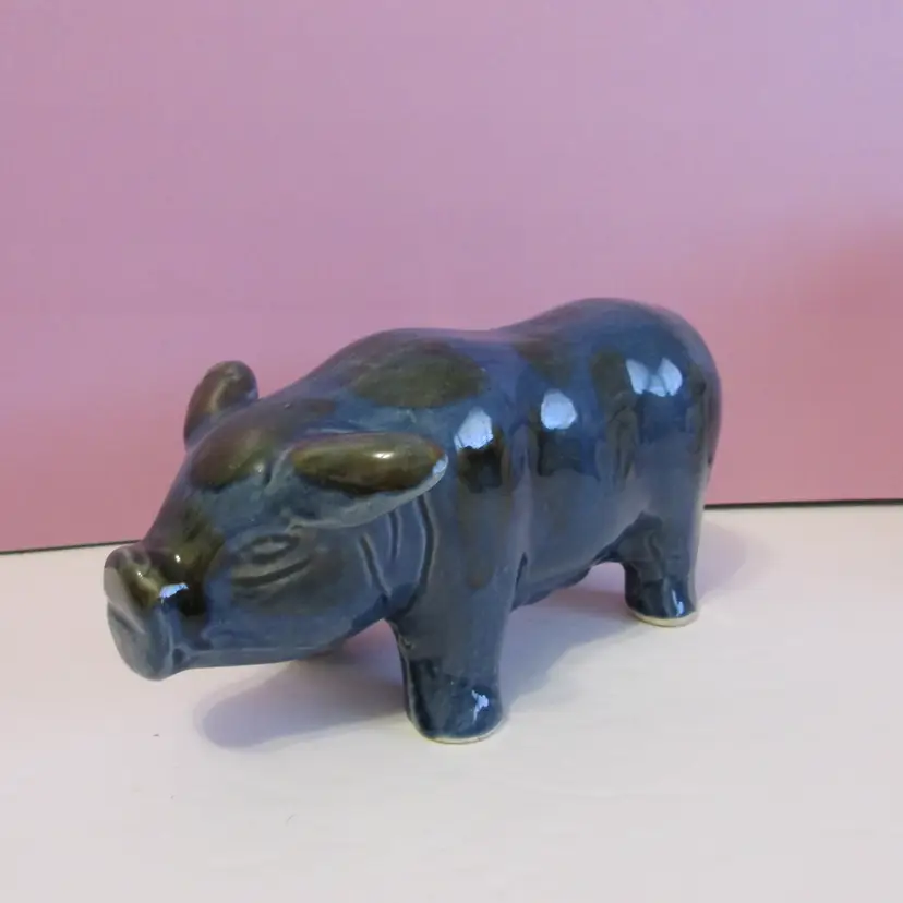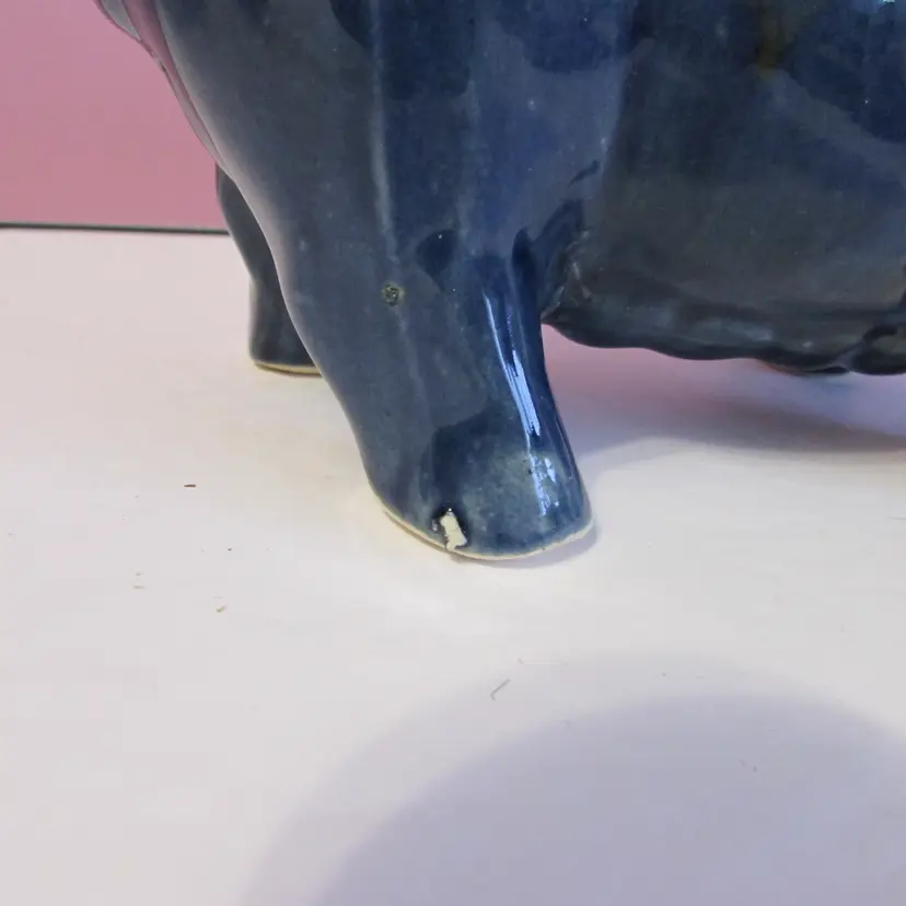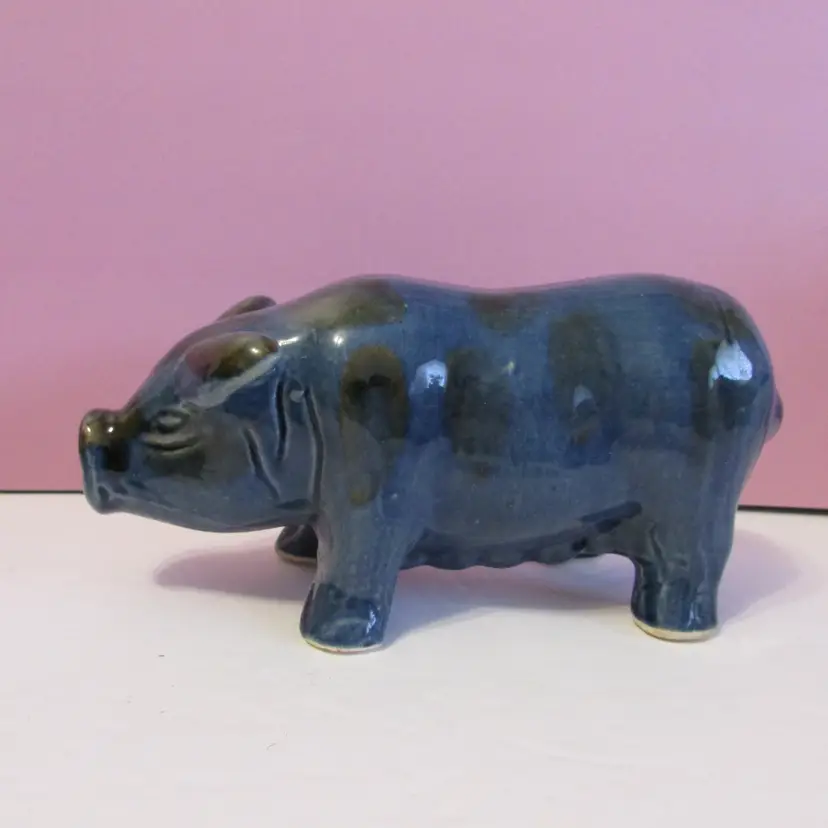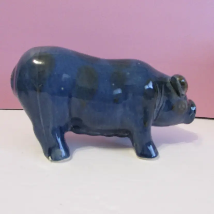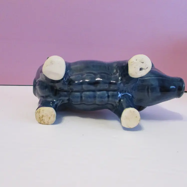 This pig has is a little extra piece of pottery on one of his foot, but he is a great piece. It is about 3" x 7 1/2" x 3".