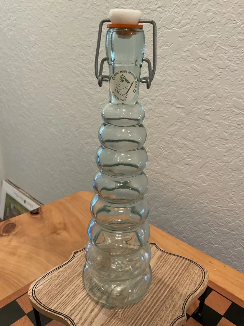 Spanish recycled glass bottle, often referred to as a "Bolas" or graduated bubble ring bottle, typically imported from Spain and featuring a swing-top closure.
