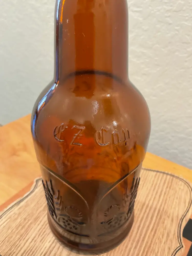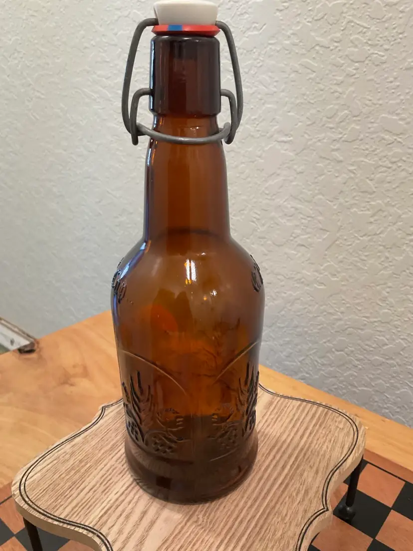 Collectible amber glass beer bottle featuring a traditional "E.Z. Cap" swing-top mechanism with a porcelain stopper. Brand: Widely associated with Grolsch Brewery, often referred to as a "Grolsch style" bottle.