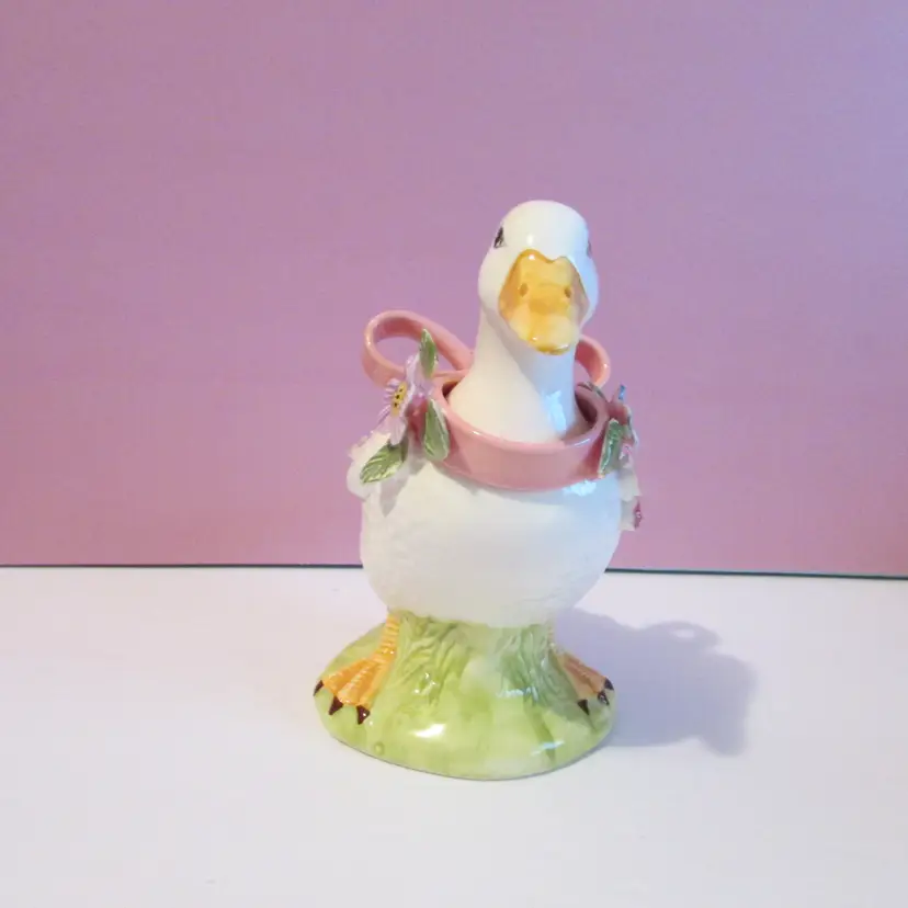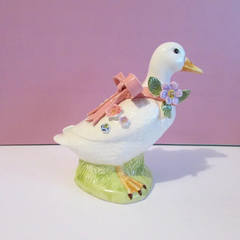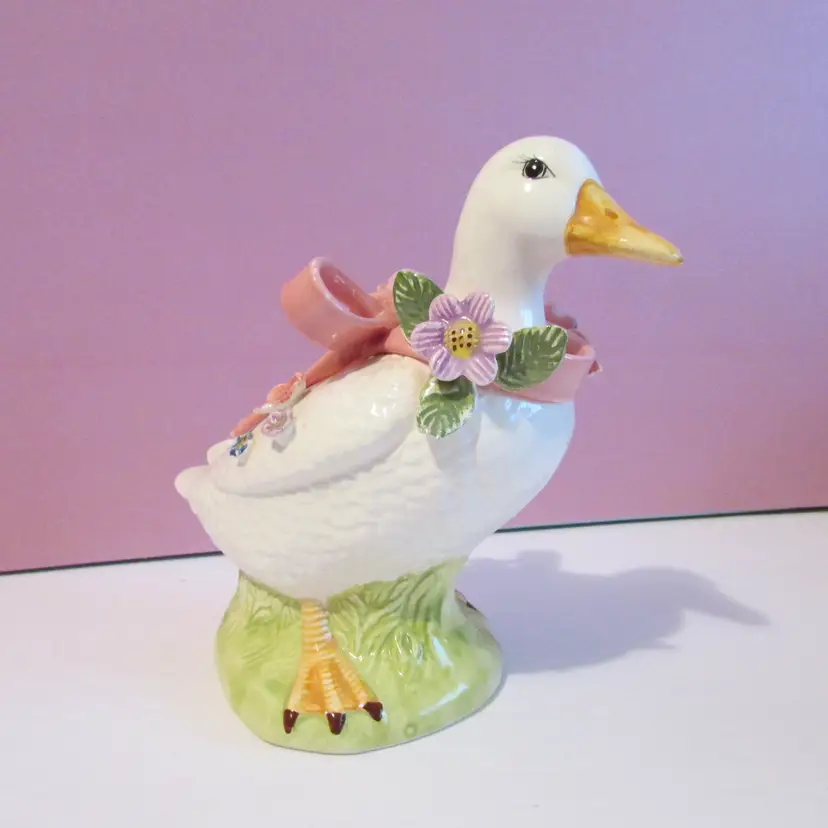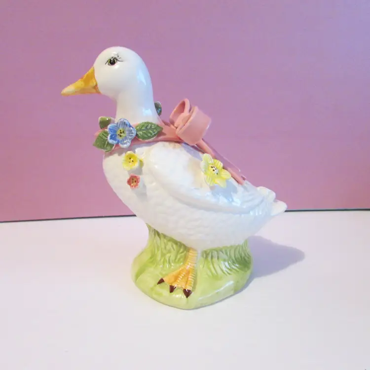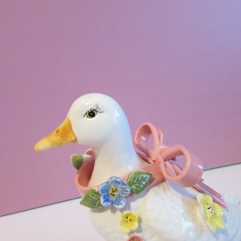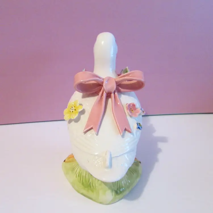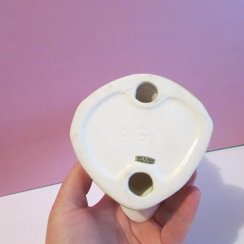This adorable piece has some wear, her eyelashes has been smudged and she has some glaze skips on her head. Still a lovely piece to display, she is about 7" x 6" x 4 1/2".