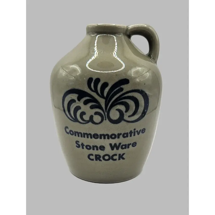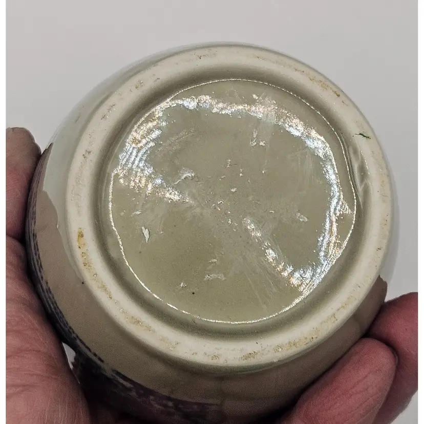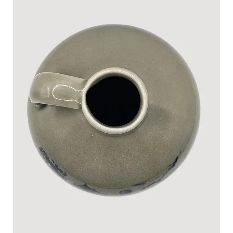 7" tall x 4.5" wide, gray with blue design. Very good condition.