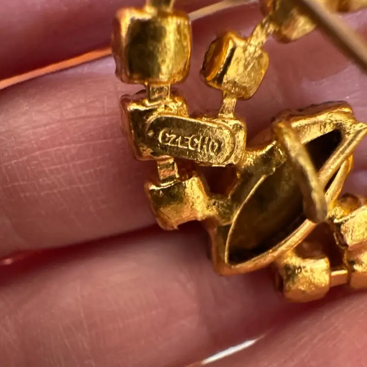 Beautiful vintage Czech glass brooch. Incredible vintage condition! Measures 1 inch.