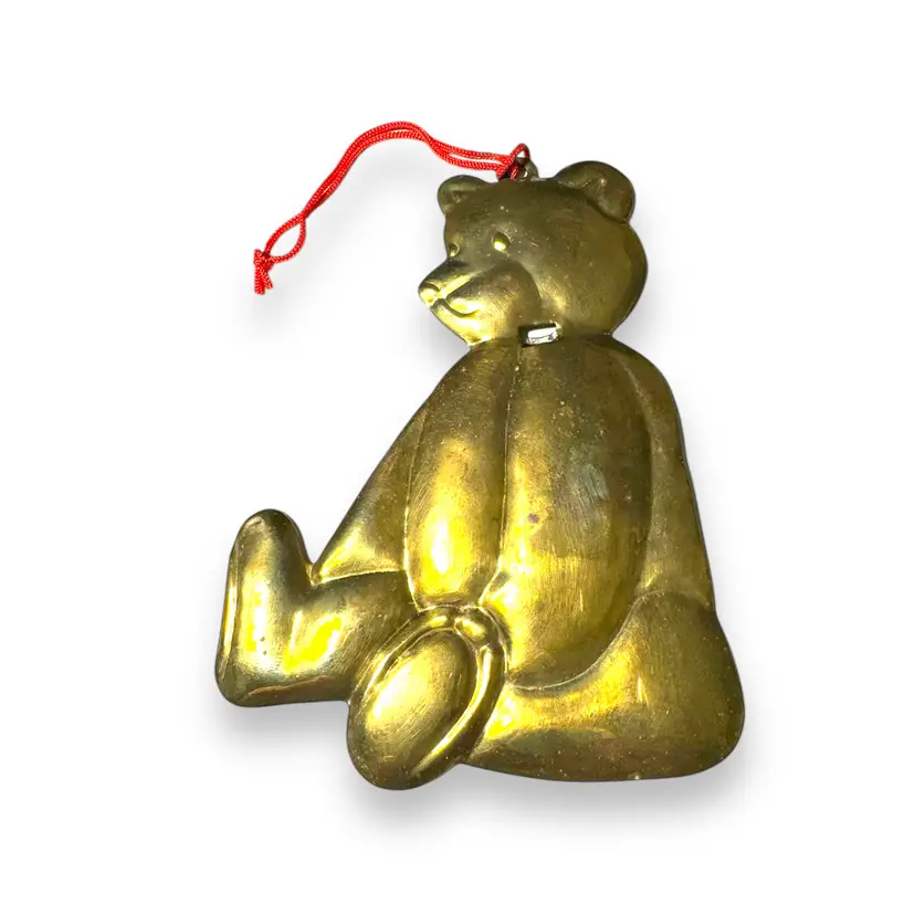 Add a touch of vintage charm to your Christmas tree or decorations with this beautiful brass ornament featuring a teddy bear.