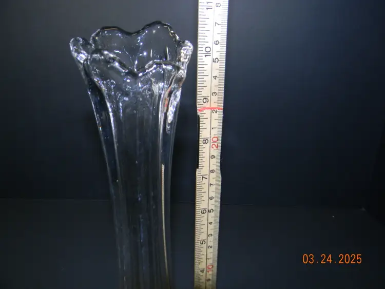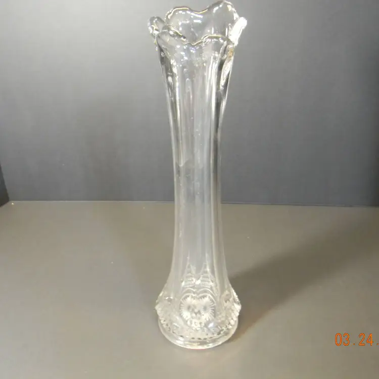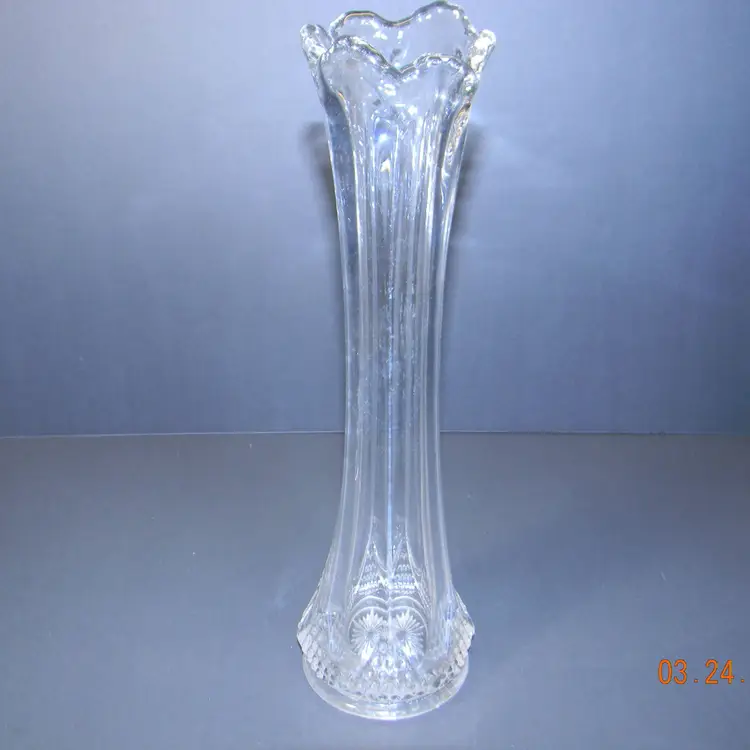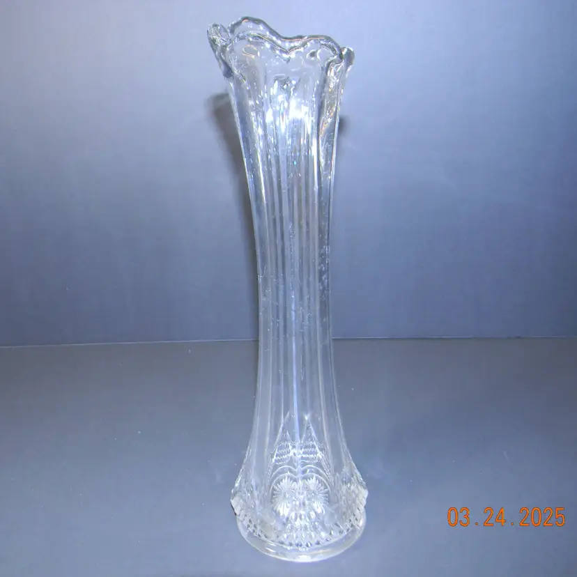 Vintage Diamond Pattern Clear Glass Vase measurements wide 2 1/2 inches and 10 1/4 inches tall and 2 3/4 Used Condition No chips or cracks see photos The difference in computer monitors actual colors may vary slightly from those shown