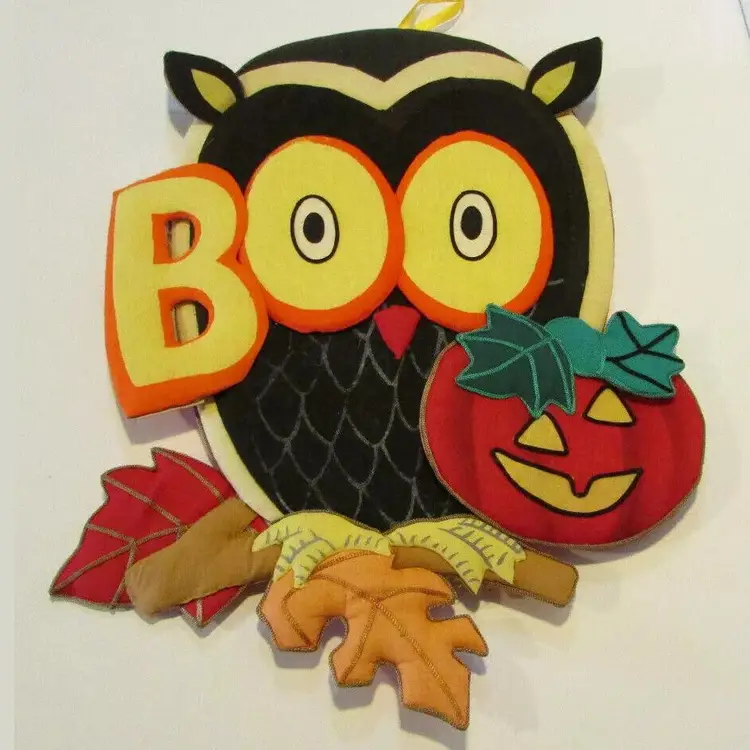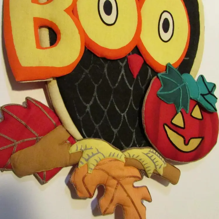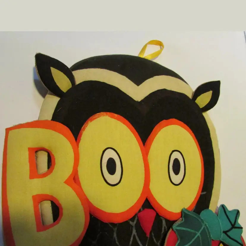 This adorable owl has some wear, but still a fun piece to display. There feels like a thin board/cardboard material inside to give him shape. It is about 15" x 12". This is shipped from a smoke free home. Thanks for looking! locurr