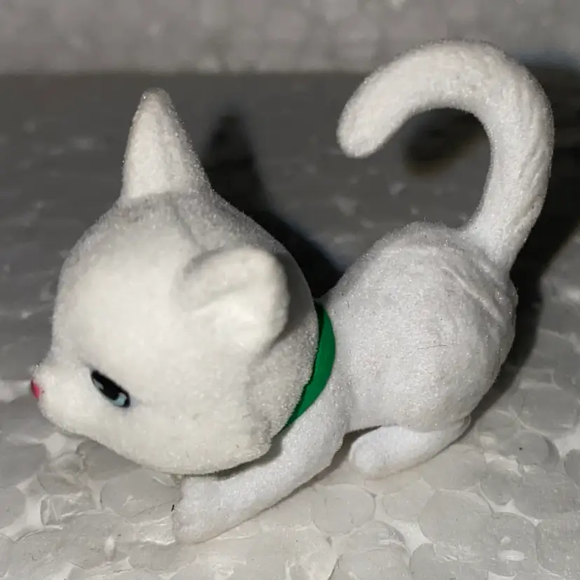 #01- Vintage Flocked Miniature Cat Figurine- Kitty In My Pocket As Pictured