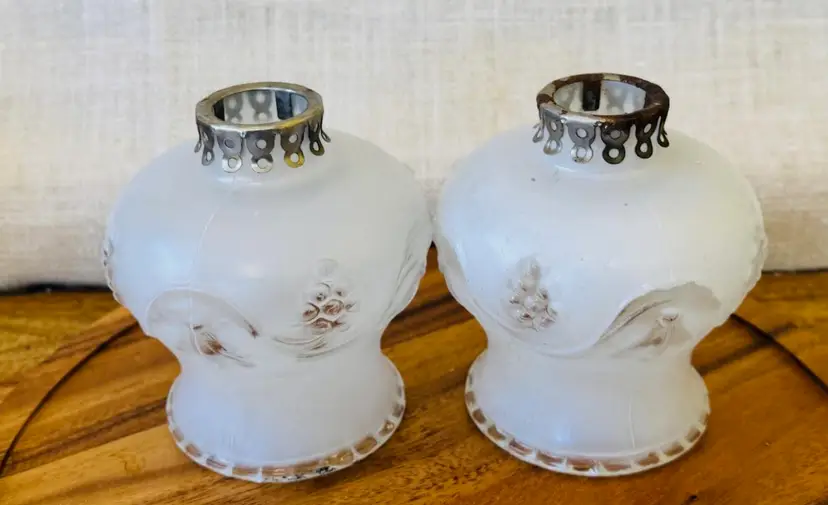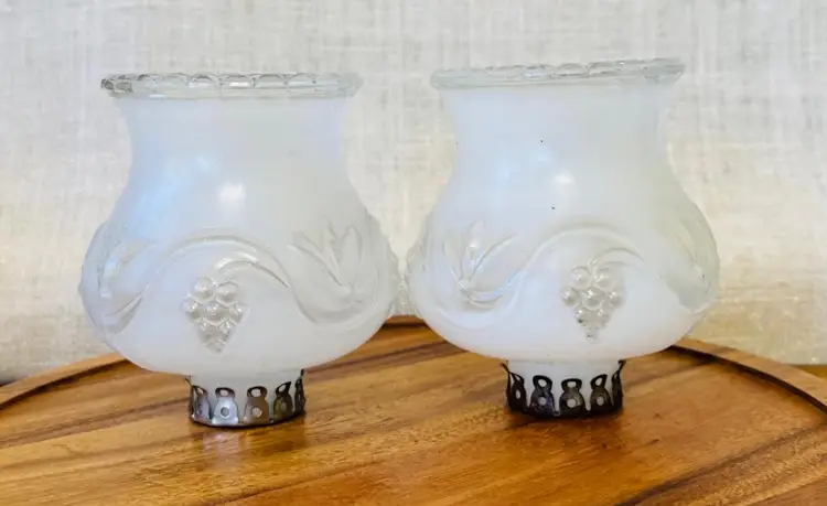 Vintage Frosted Glass Light Shade Sconce Embossed Berry Vine 1.75" Fitter #145 Metal Fitter Cover Excellent Condition, no Chips Cracks or Scratches on the Glass! Width 4.75", Height 5 1/8" Fitter 1 3/4" Have any questions at all, please send me a message anytime!