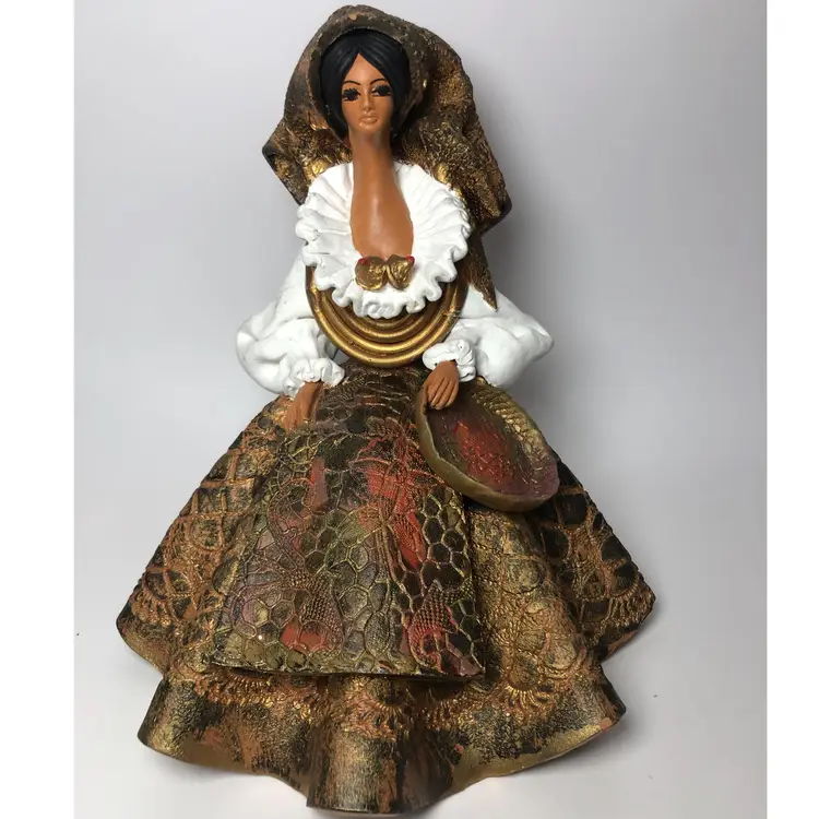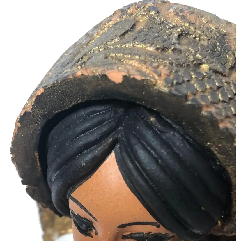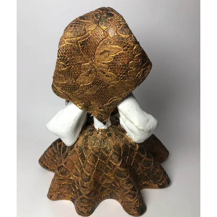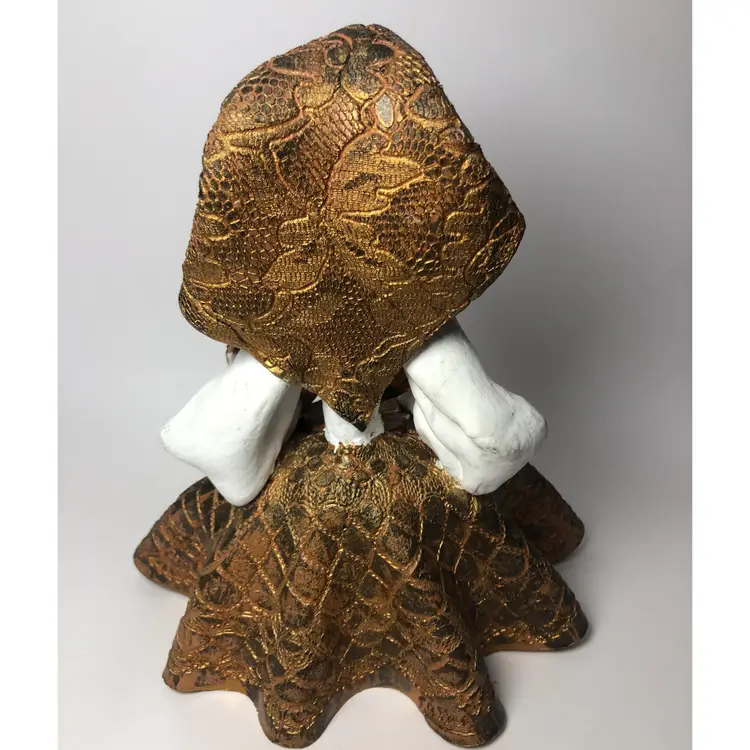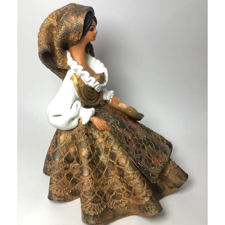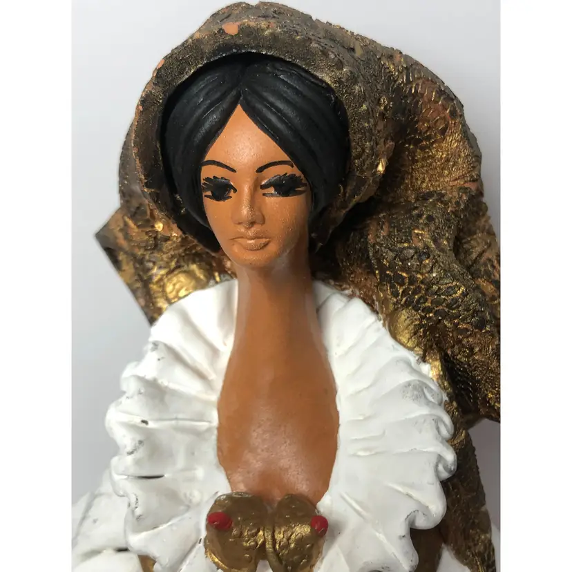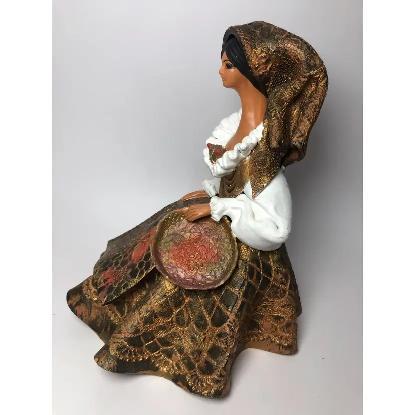 Just beautiful! Vintage Giuliana Collu Signed Sardinian Art Pottery Woman Terracotta Sculpture. About 10.75" tall x 9.5" diameter base. Great piece of slab pottery. Very Mid Century Modern in style. Made in Italy. One small chip on dress edge as shown and some chips around head on scarf as shown. Signed on the back.