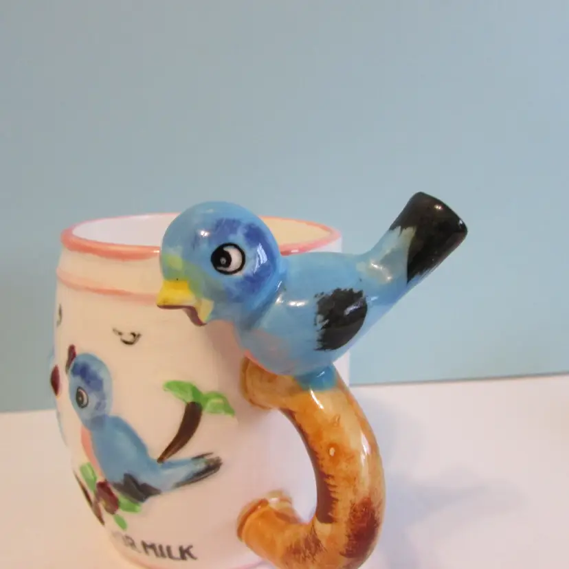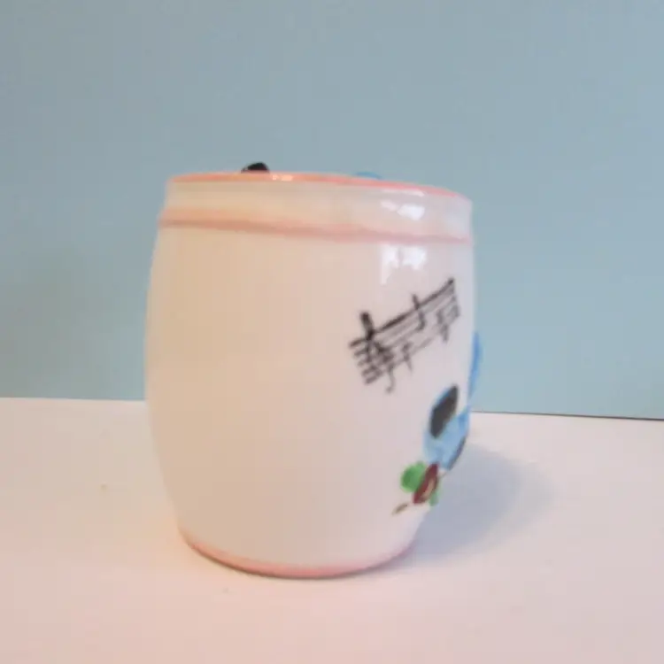 This adorable mug has some wear, there is some crazing, but still a lovely piece to use and display. It is about 3 1/2" x 2 1/2" x 4". This is shipped from a smoke free home. Thanks for looking!