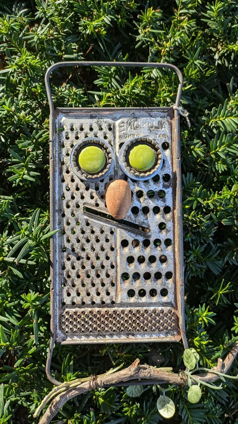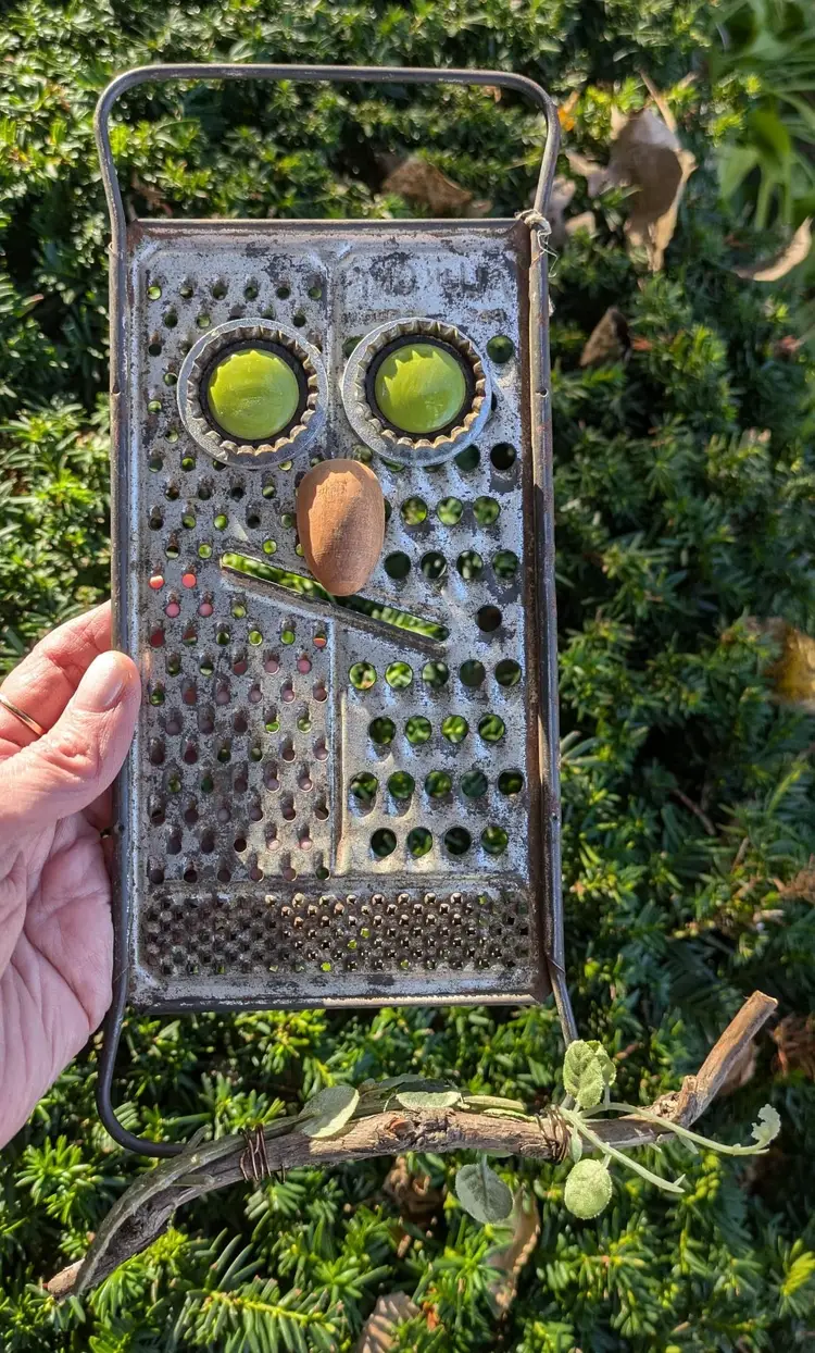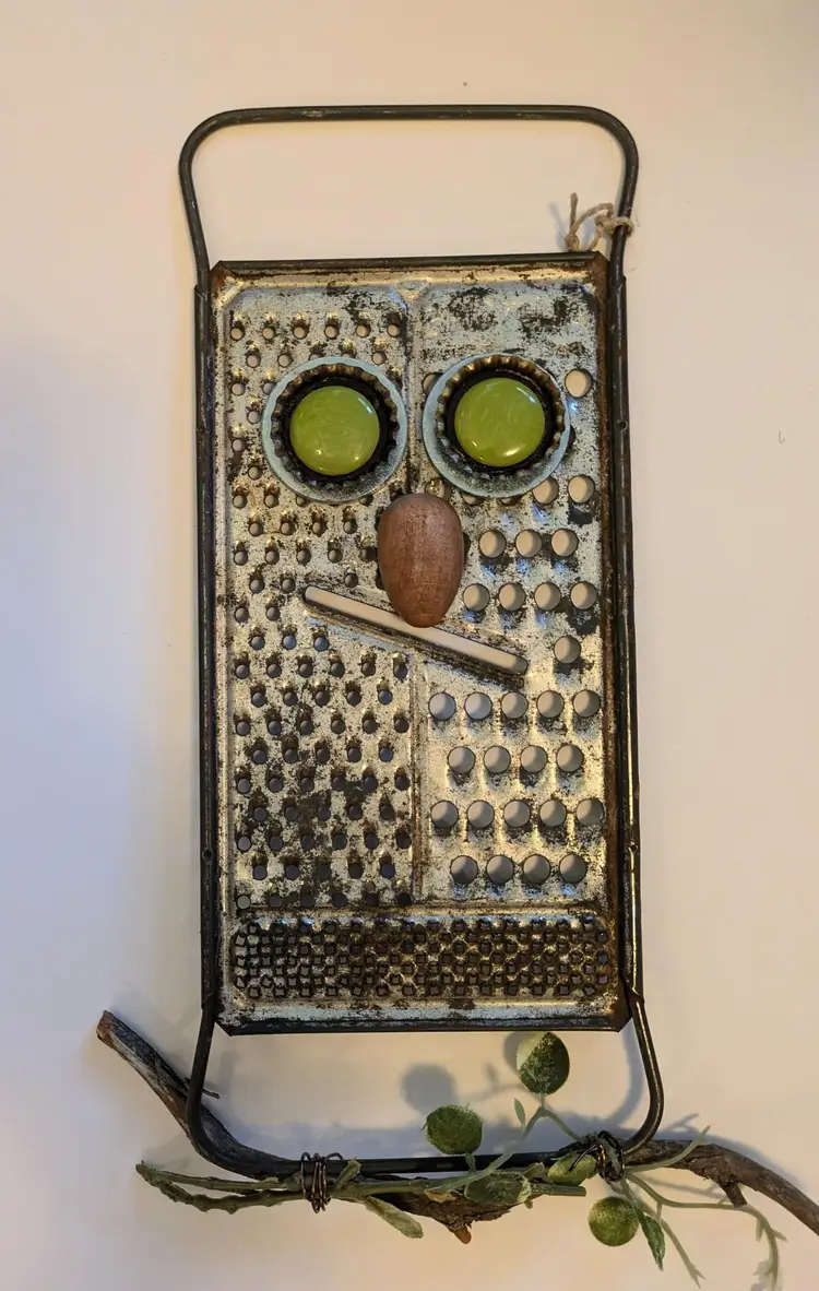 Recycled and repurposed. This unique vintage Owl has a cute face, great for halloween/fall.