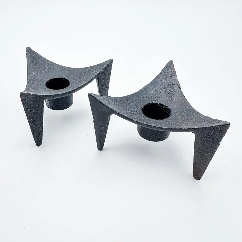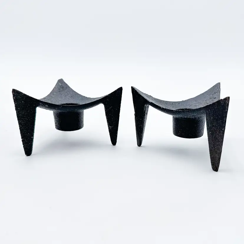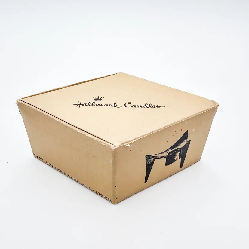 Vintage Hallmark Cast Iron Black Metal MCM Atomic Candle Holders Original Box 3.5 X 2.25" B25