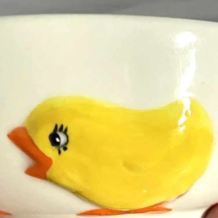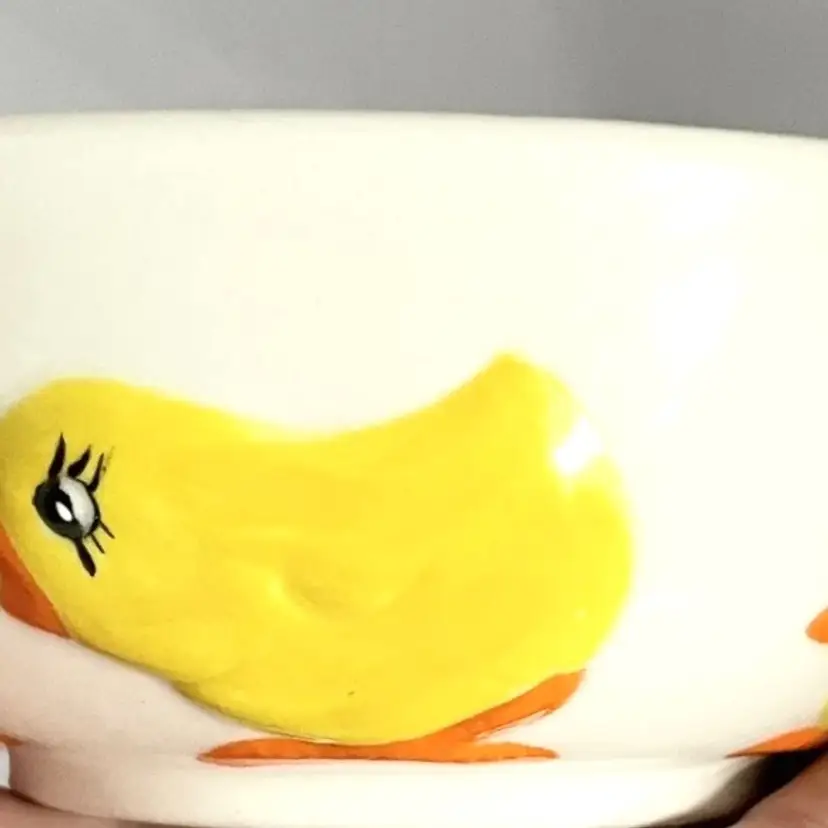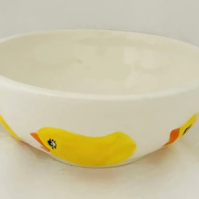 Vintage hoppiest baby chic bowl that is so sweet and perfect for spring and Easter. This hand painted bowl is dated 1988 with five bright yellow baby chicks with just the slightest of differences. It is in great condition with no chips or cracks.
