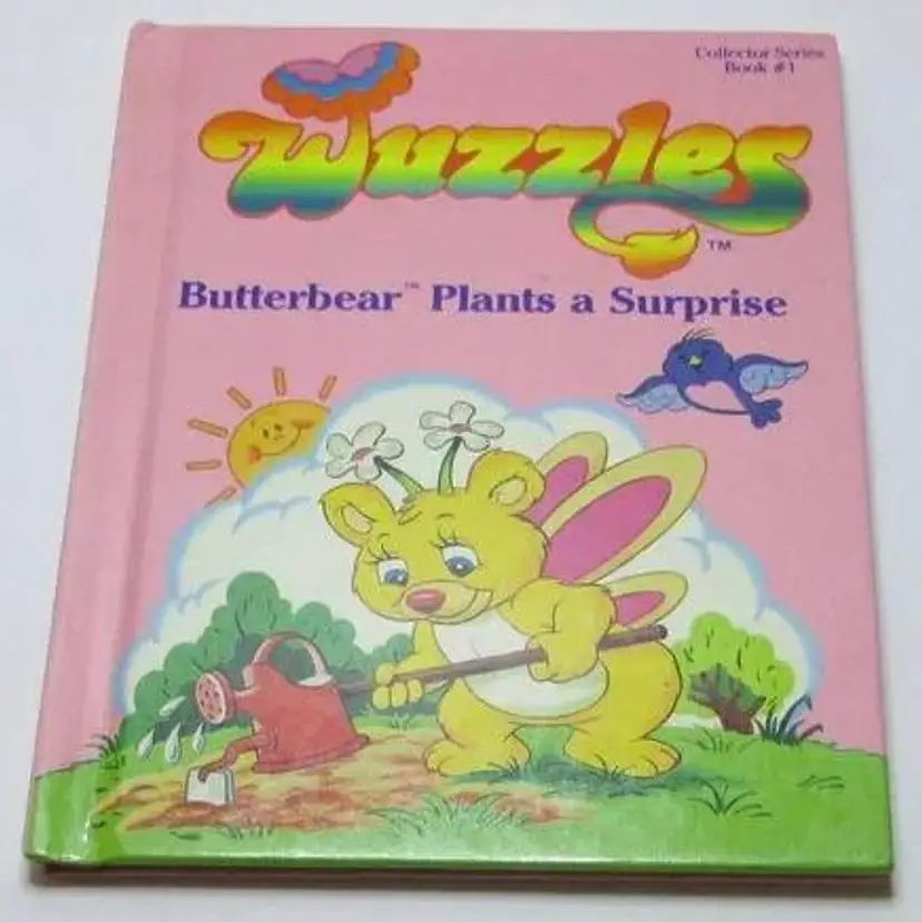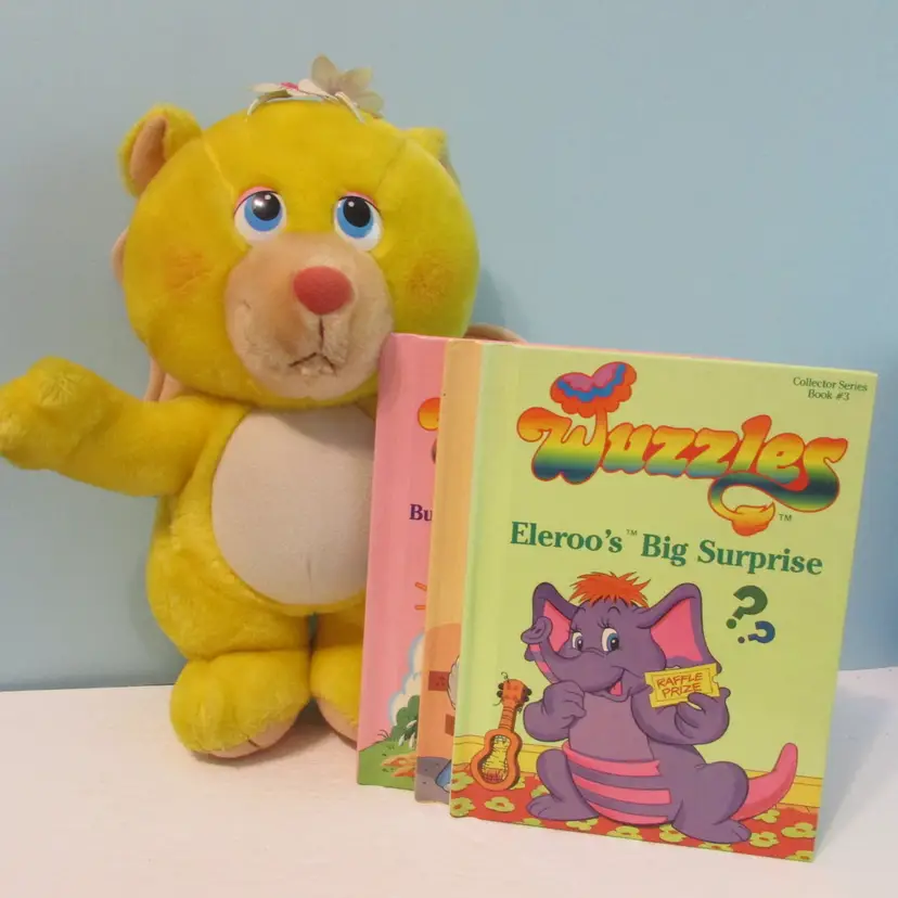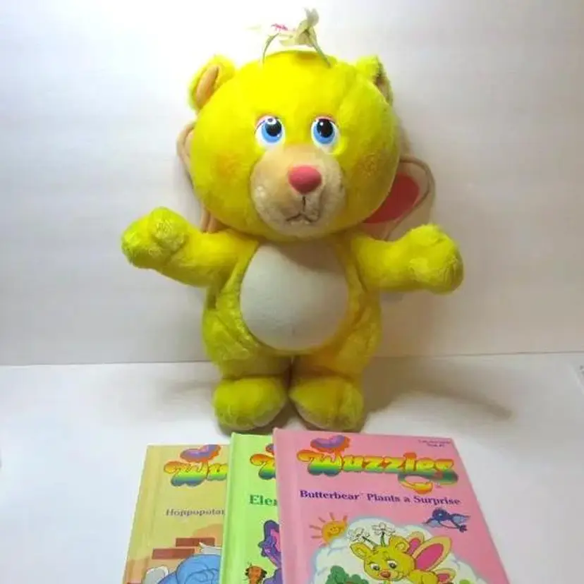 vintage Hasbro Softies Butter Bear stuffed animal teddy bear with 3 Wuzzles books lot