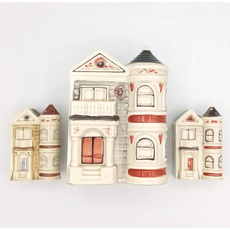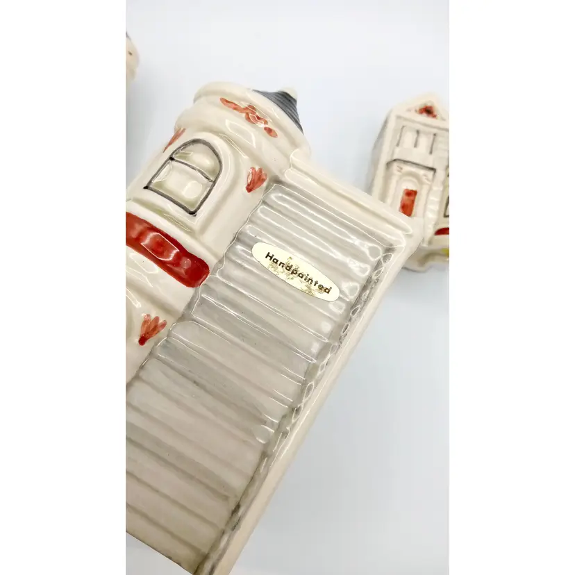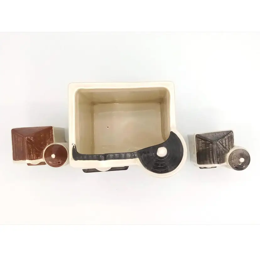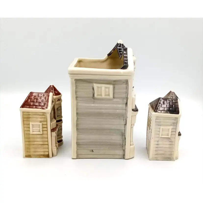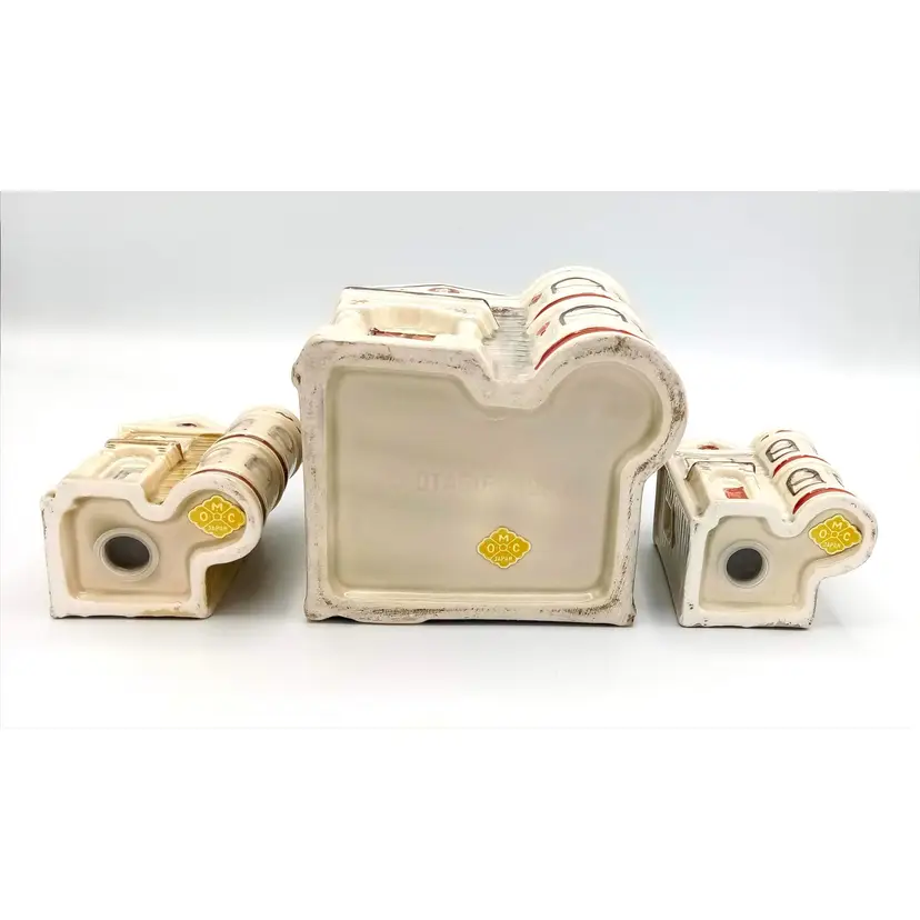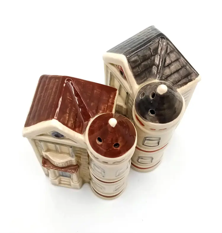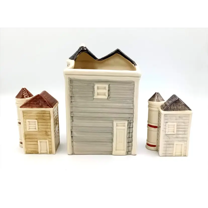 These Otagiri (OMC) shakers and canister (napkin/utensil holder) are in excellent condition! The stoppers are still present in the shakers and they are a true pair, with 3 holes in one for salt and 2 holes in the other for pepper. The canister has a tiny chip in the rim. It's meant to be lidless and stands a little less than 5" high. Thanks for looking!