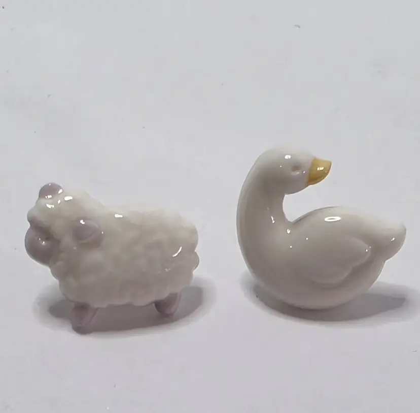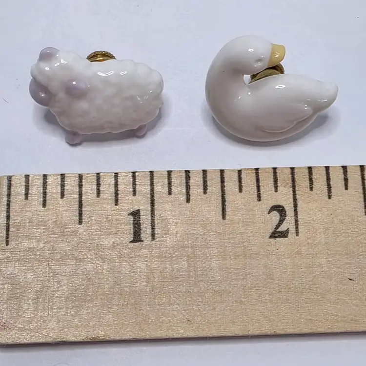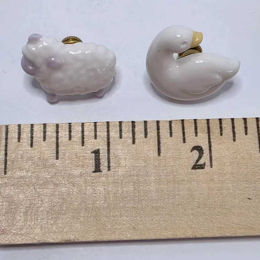 Adorable vintage miniature lapel pins featuring a fluffy sheep and a charming duck. Perfect for collectors or as a cute addition to your vintage jewelry collection. Tote #11