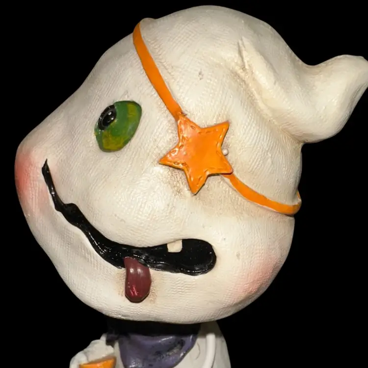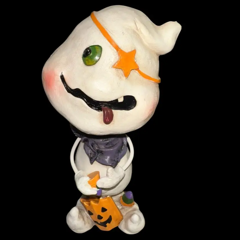 Vintage Resin Big Headed Ghost Bobblehead Shelf Sitter 6.5” His head is glued onto a spring ~ see pictures